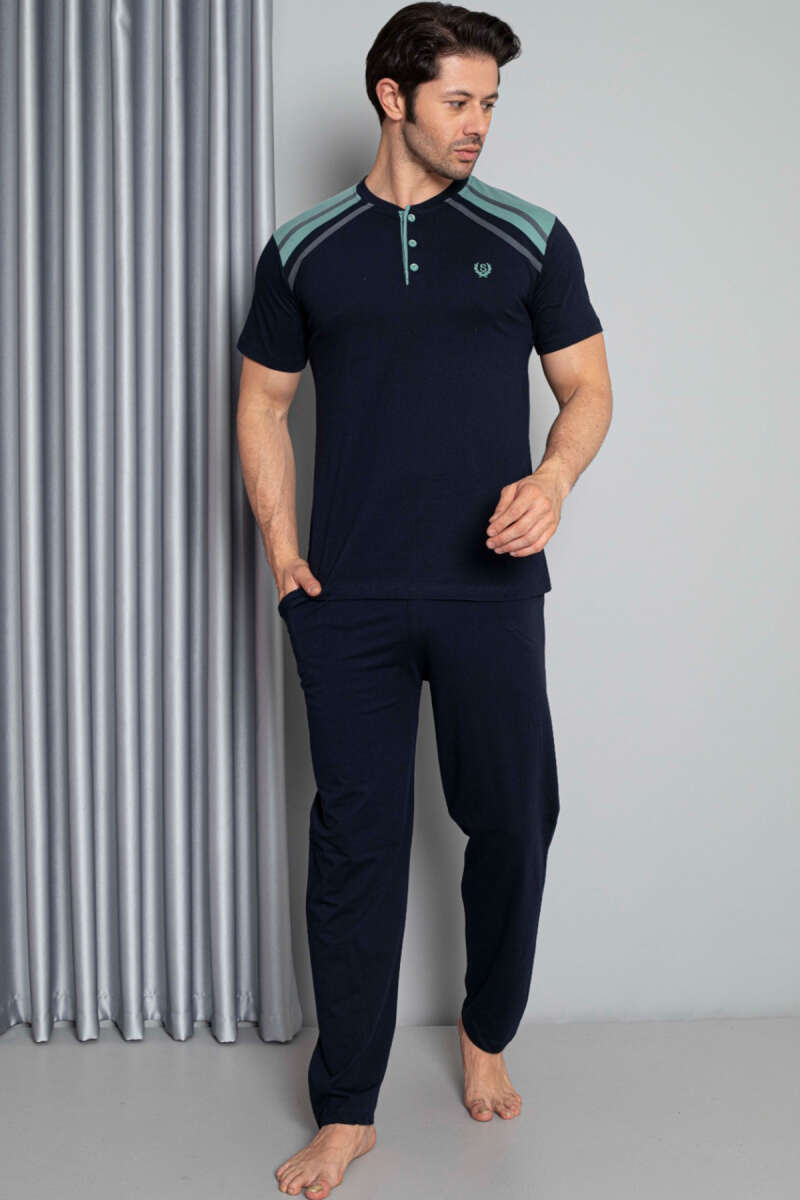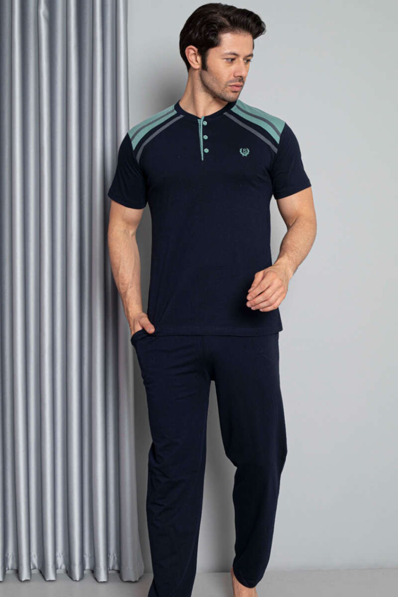 Omuz Şeritli Kısa Kol Erkek Pİjama Takımı Lacivert Yeşil