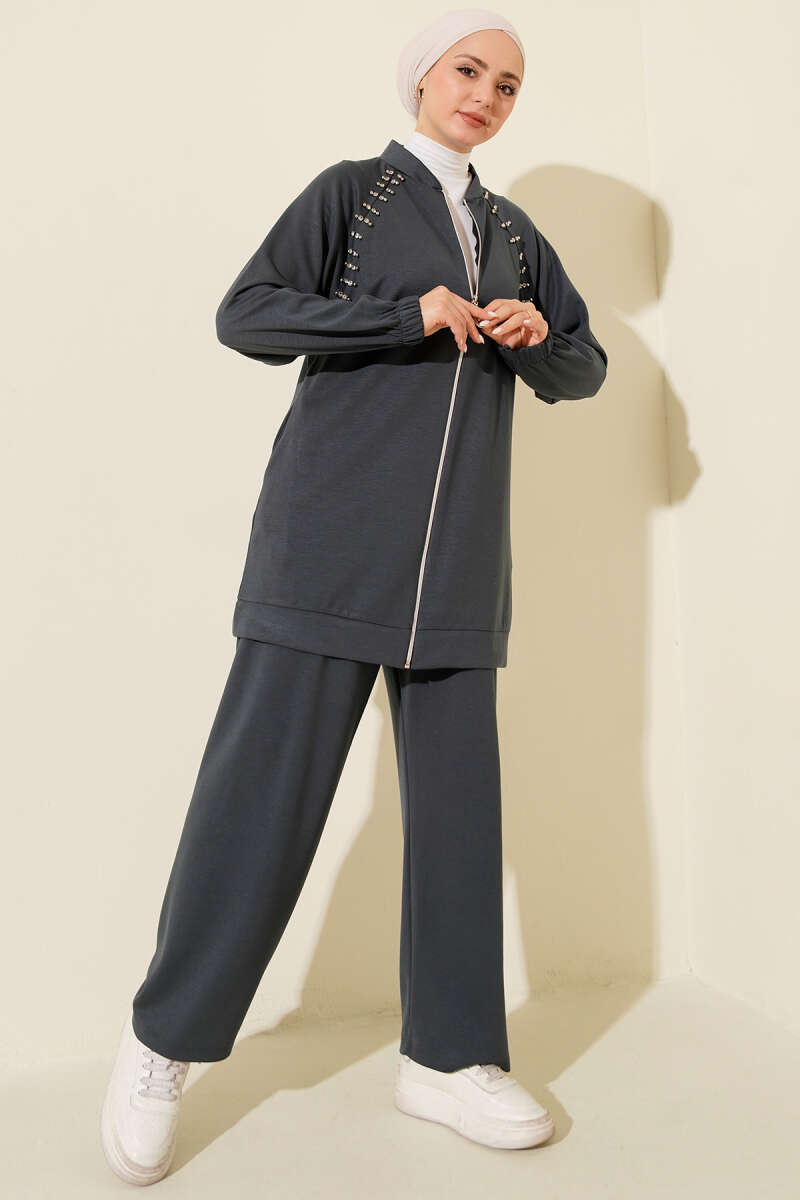 Omuz Taşlı Fermuarlı Loyşa İkili Takım Lacivert