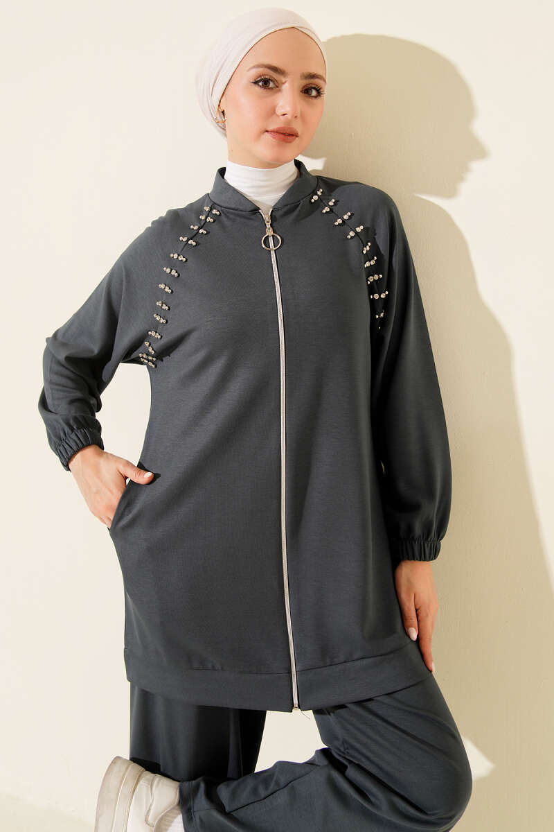 Omuz Taşlı Fermuarlı Loyşa İkili Takım Siyah