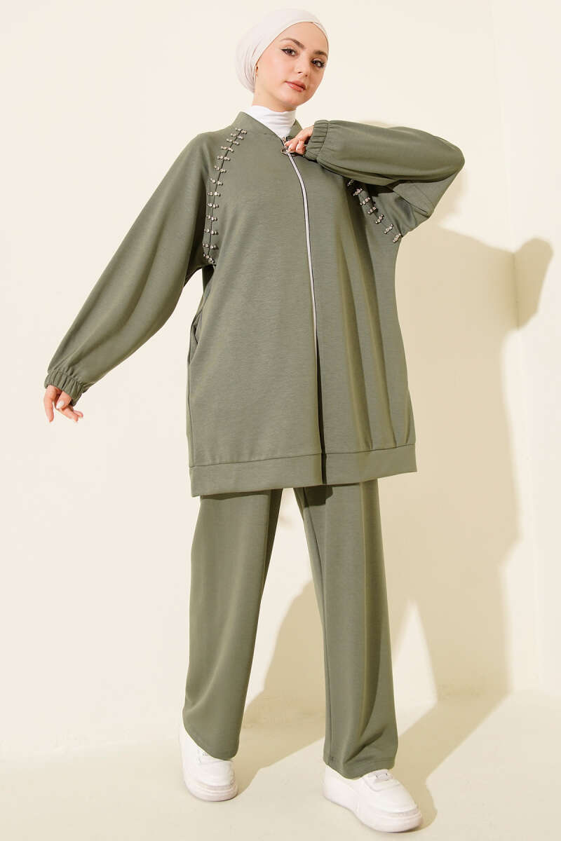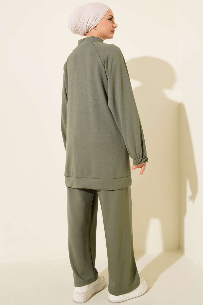Bisiklet Yaka Yandan Bağlamalı İkili Takım Haki