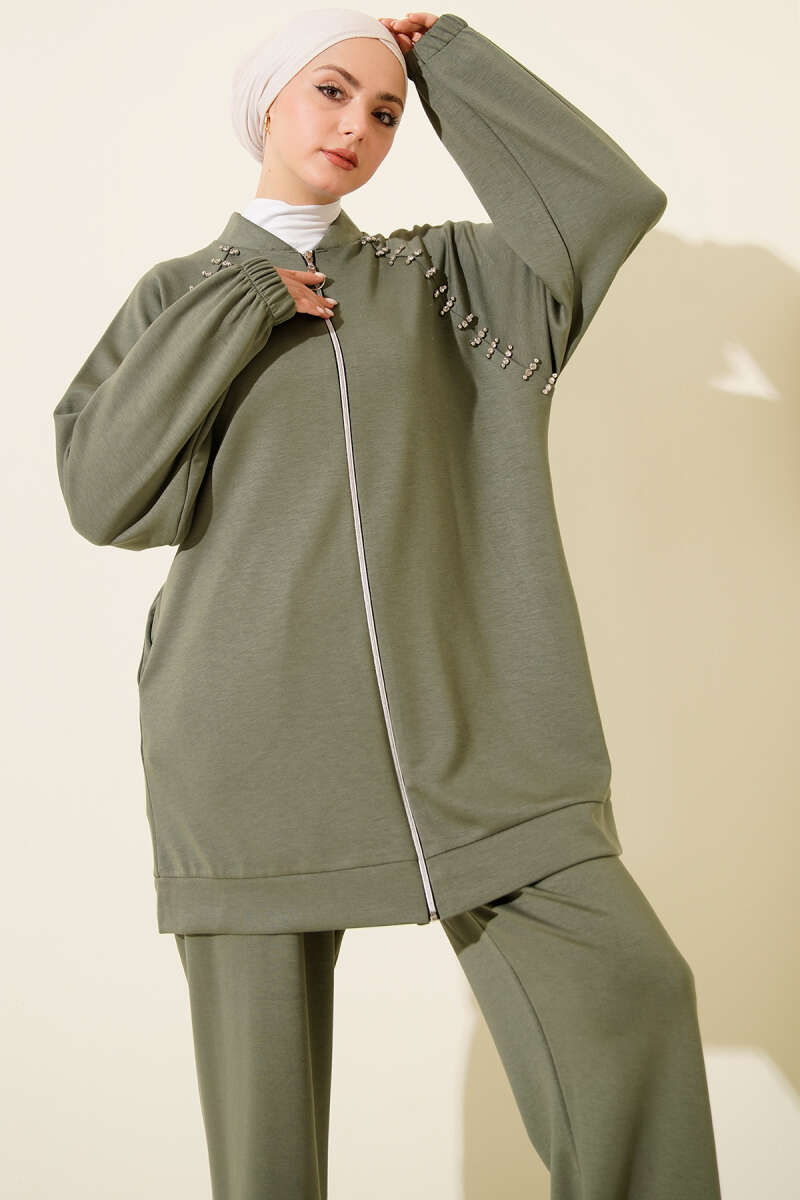 Omuz Taşlı Fermuarlı Loyşa İkili Takım Füme