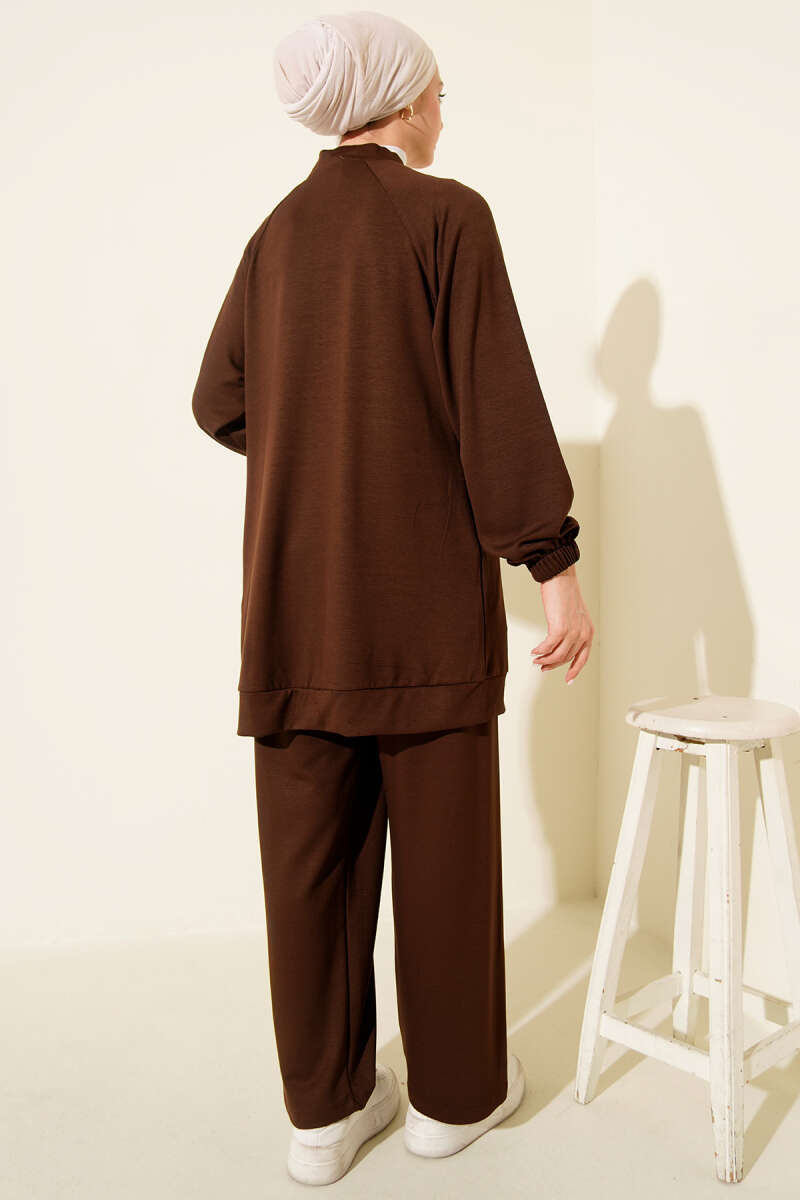 Omuz Taşlı Fermuarlı Loyşa İkili Takım Kahve