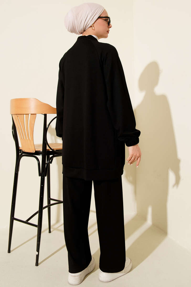 Yarım Fermuarlı Crop İkili Takım Siyah