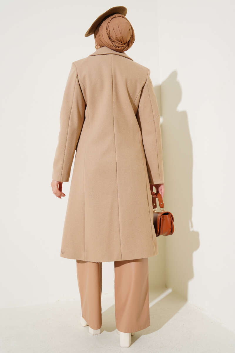 Kol Düğmeli Kaşe Kaban Bej