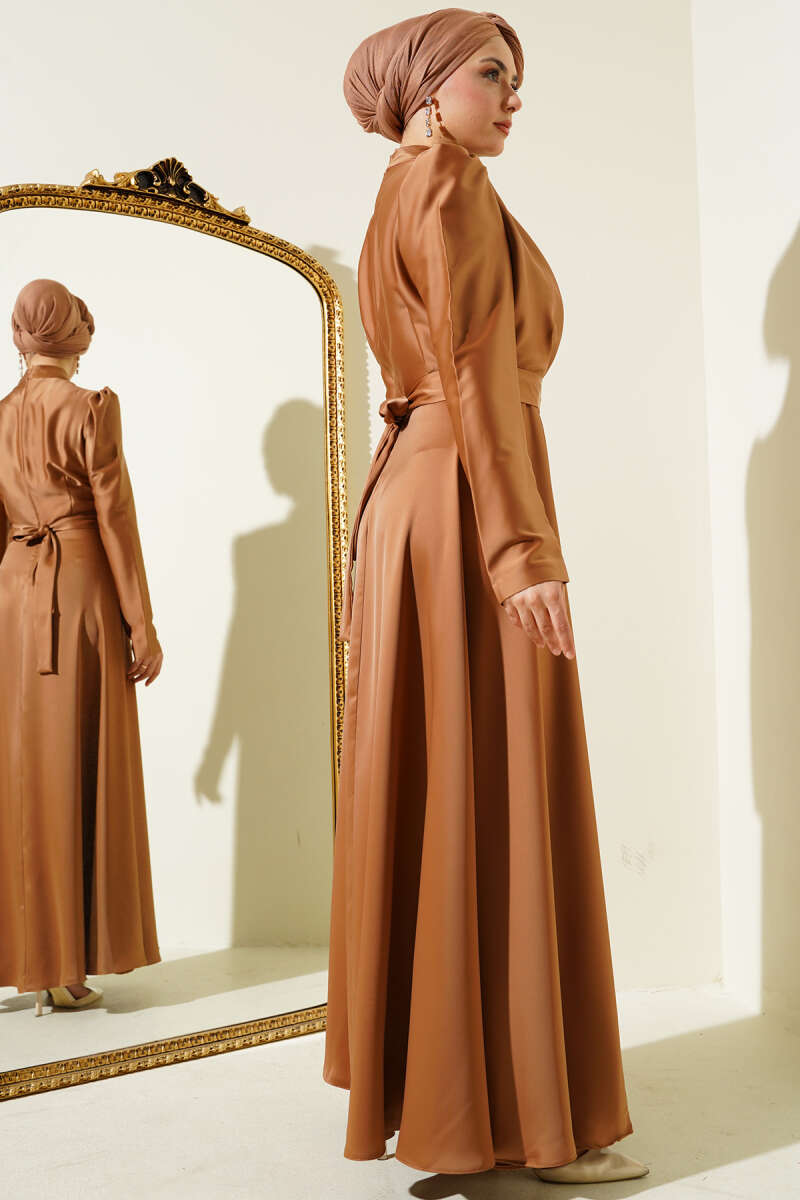 Gül Detaylı Pelerinli Abiye Elbise Haki