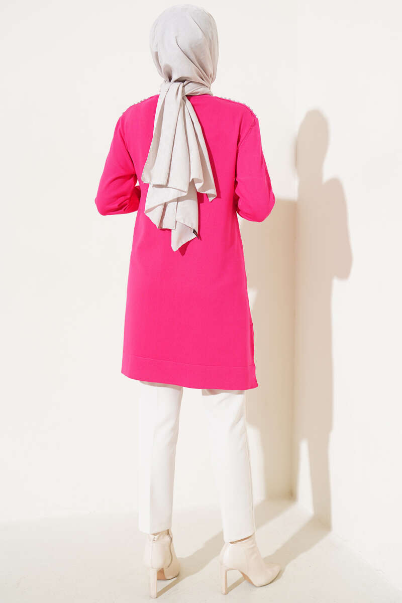 Yaka Fularlı Yumoş Triko Tunik Kahve