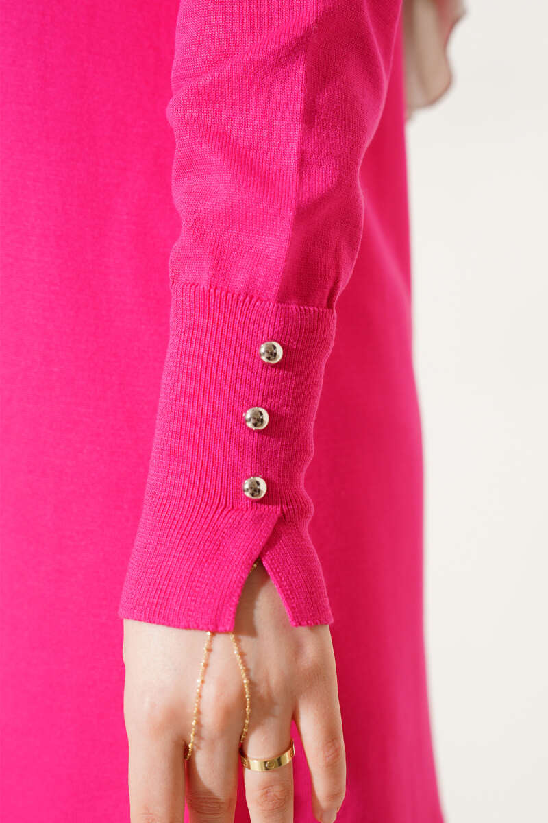 Yaka Fularlı Yumoş Triko Tunik Kırmızı