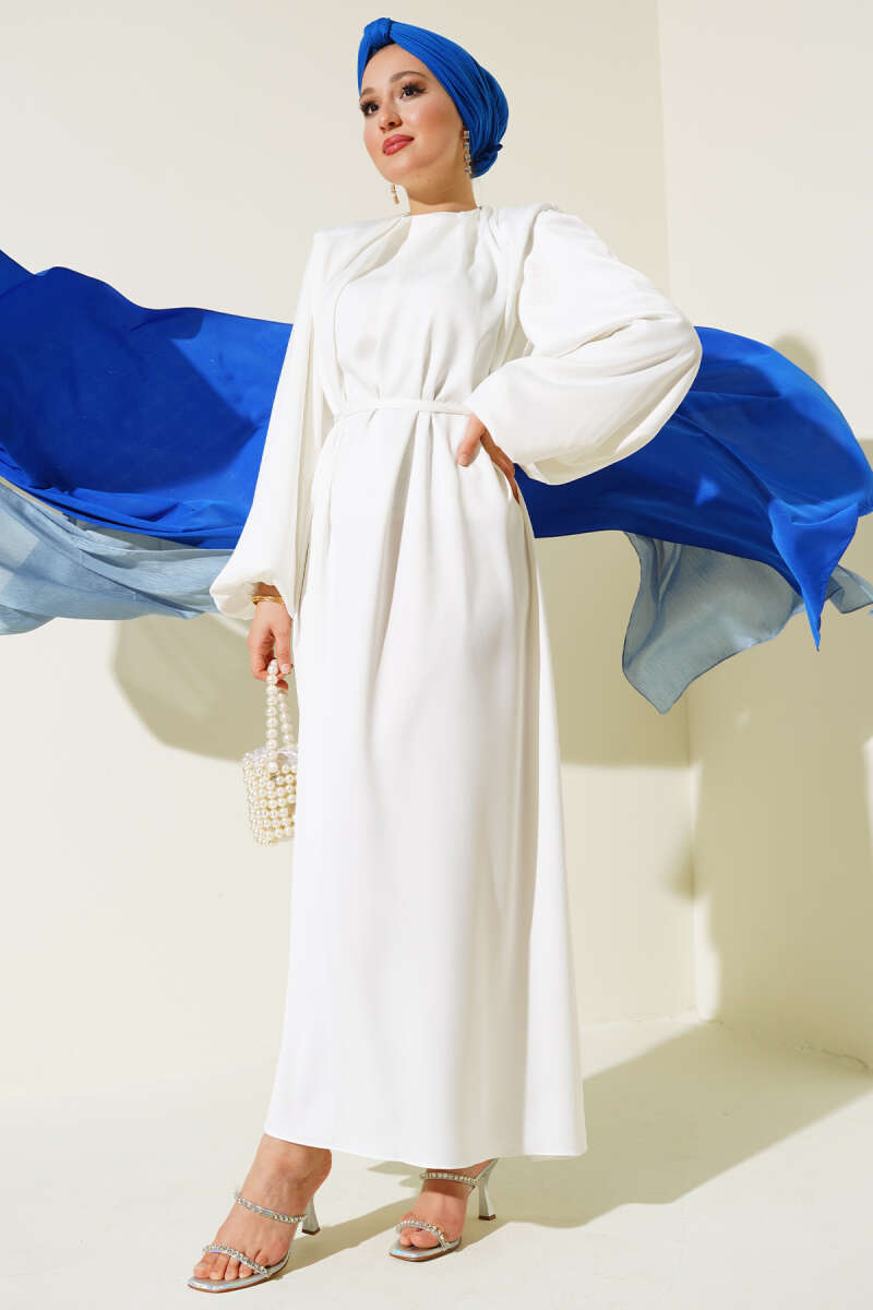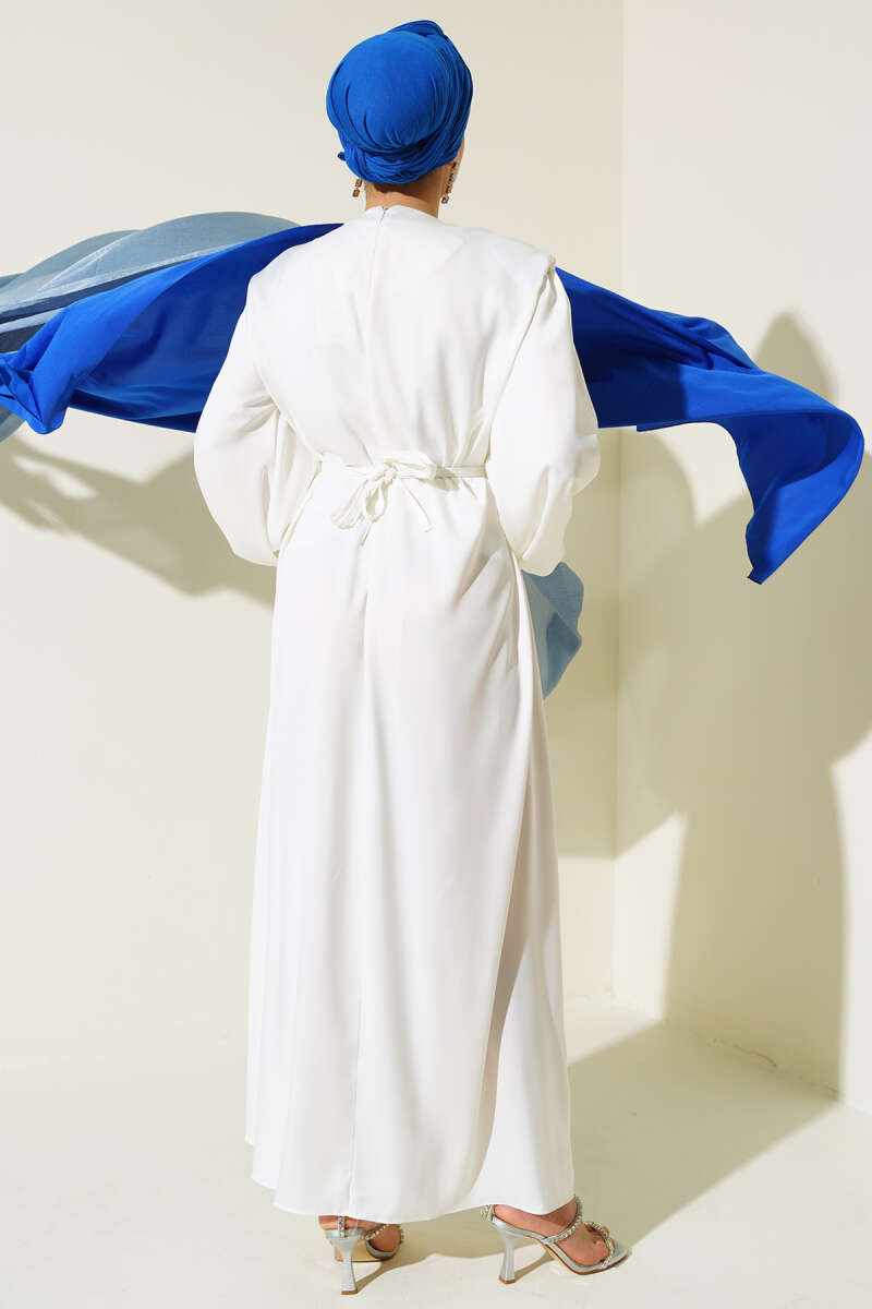 Pelerin Detaylı Pileli Triko Elbise Ekru