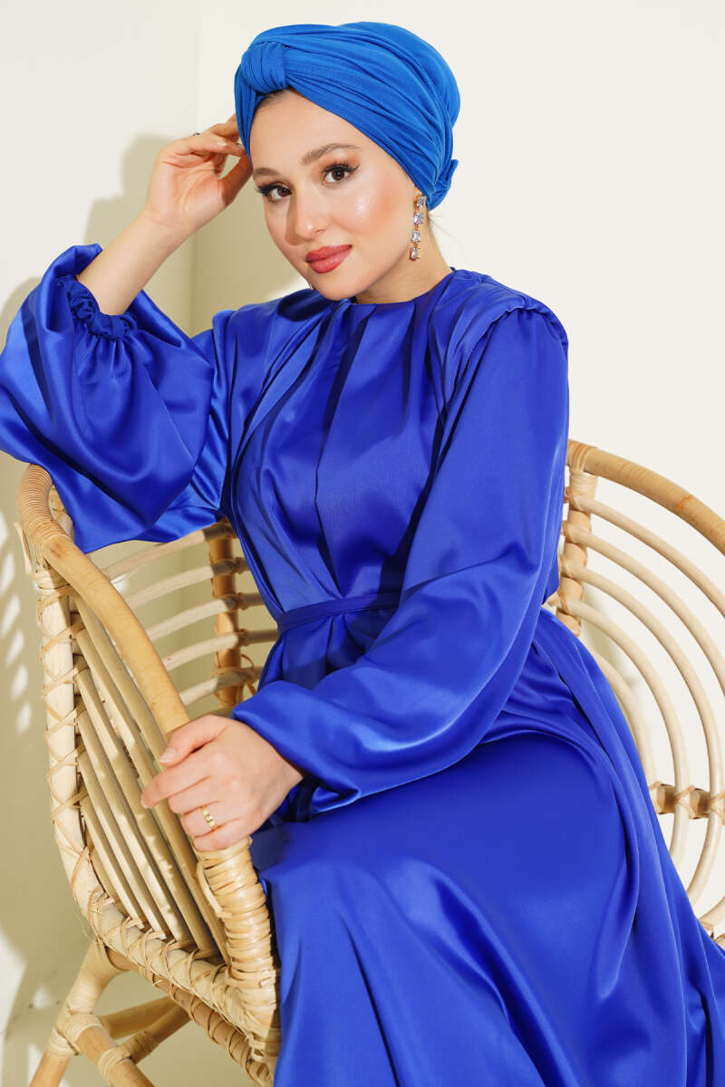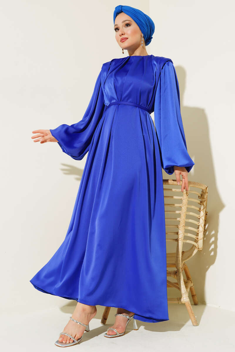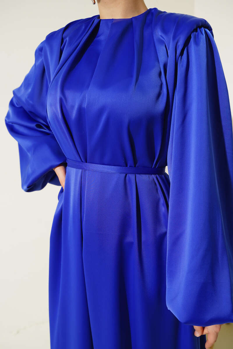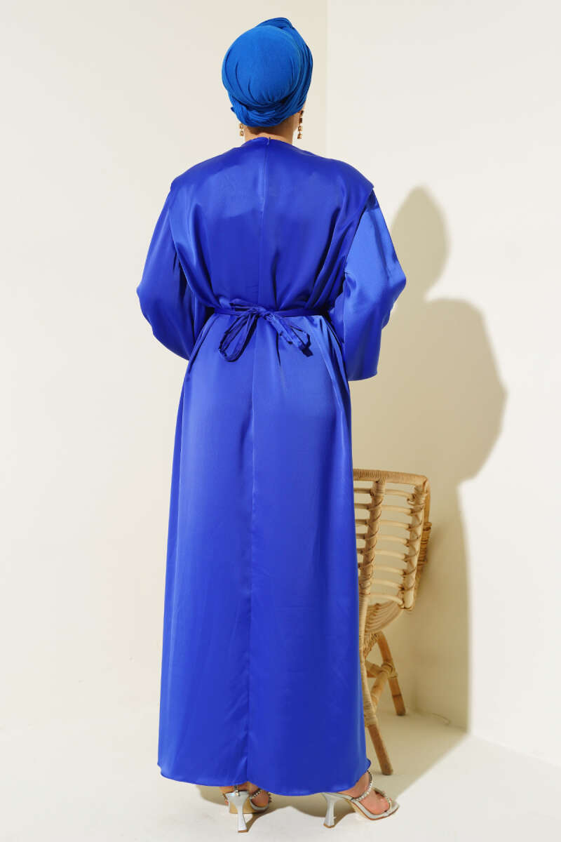 Pelerin Detaylı Pul Payet Abiye Elbise Lacivert