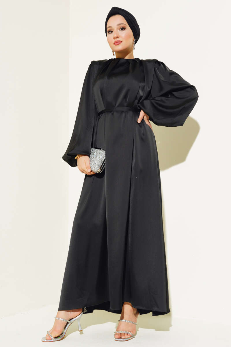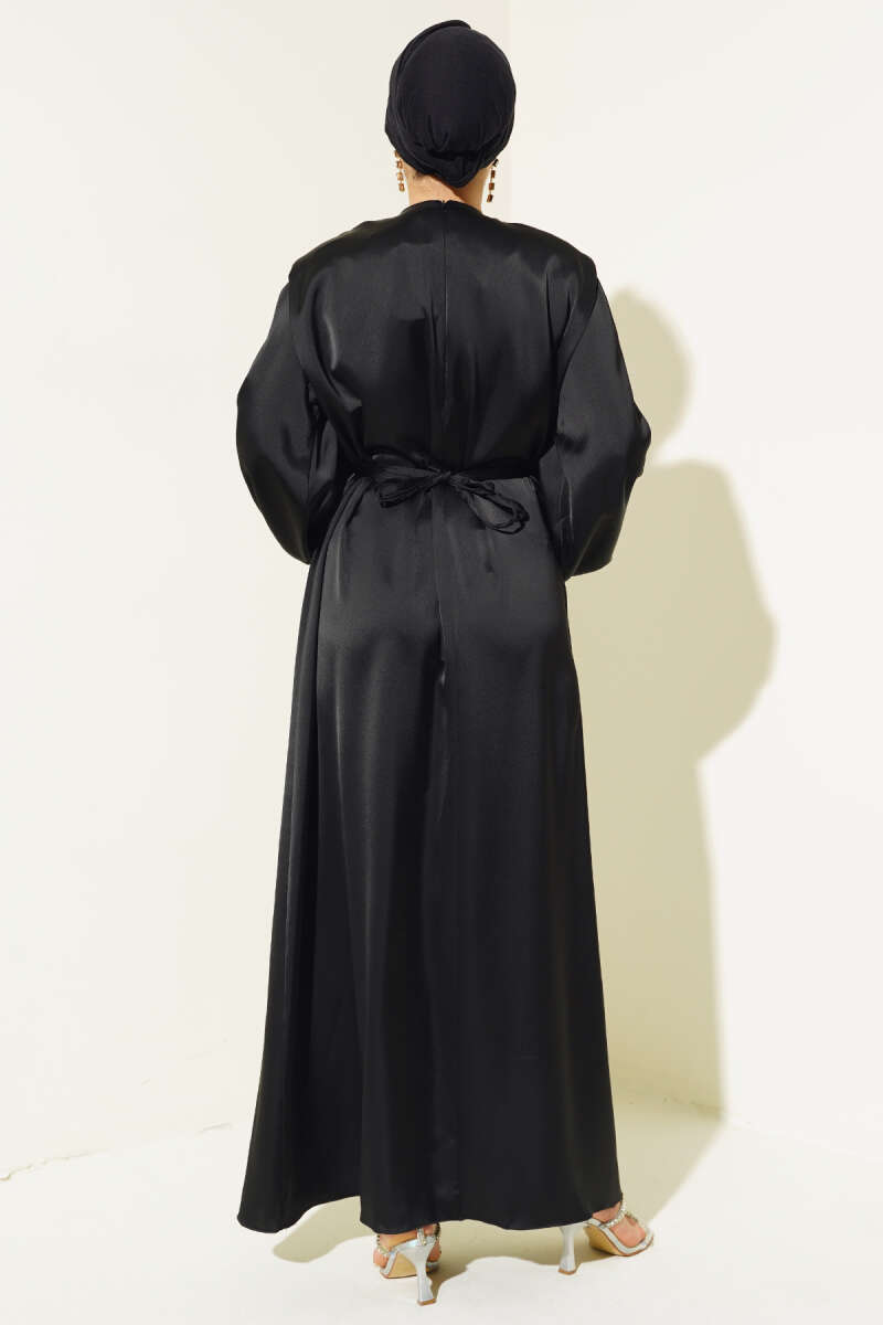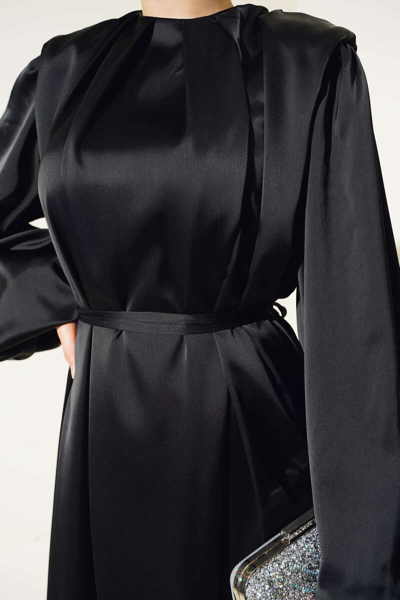 Pelerin Detaylı Pul Payet Abiye Elbise Siyah