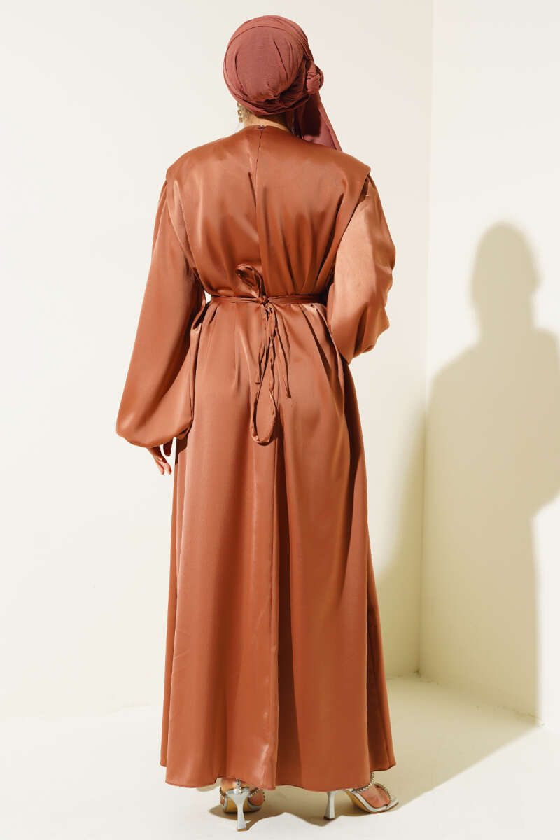 Pelerin Detaylı Pul Payet Abiye Elbise Haki