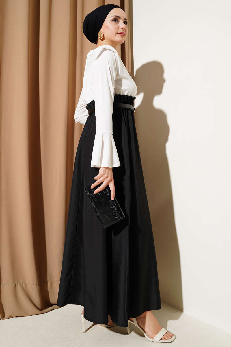 Omuz Pelerinli Taş Detaylı Abiye Elbise Siyah