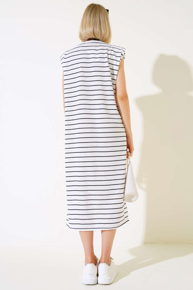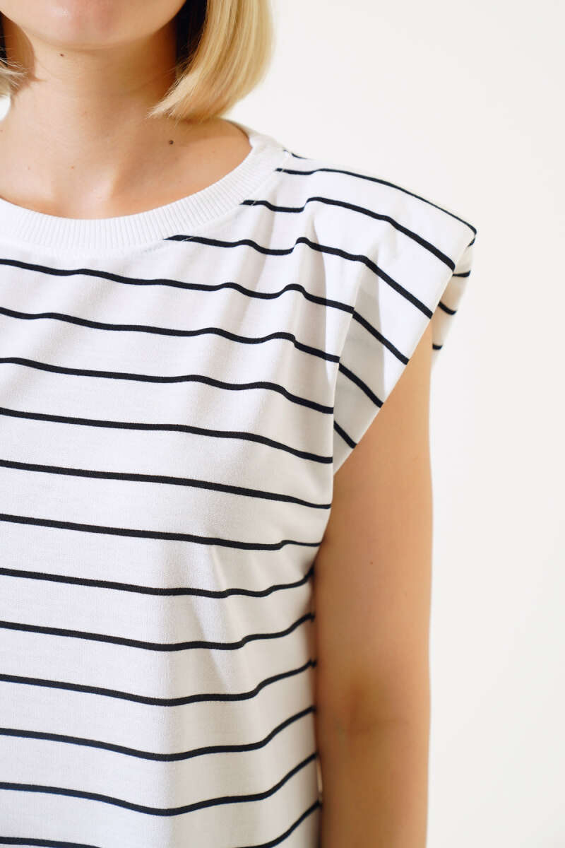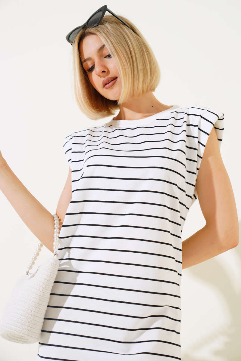 Yatay Çizgi Detaylı Basic Triko Tunik Bej Gri