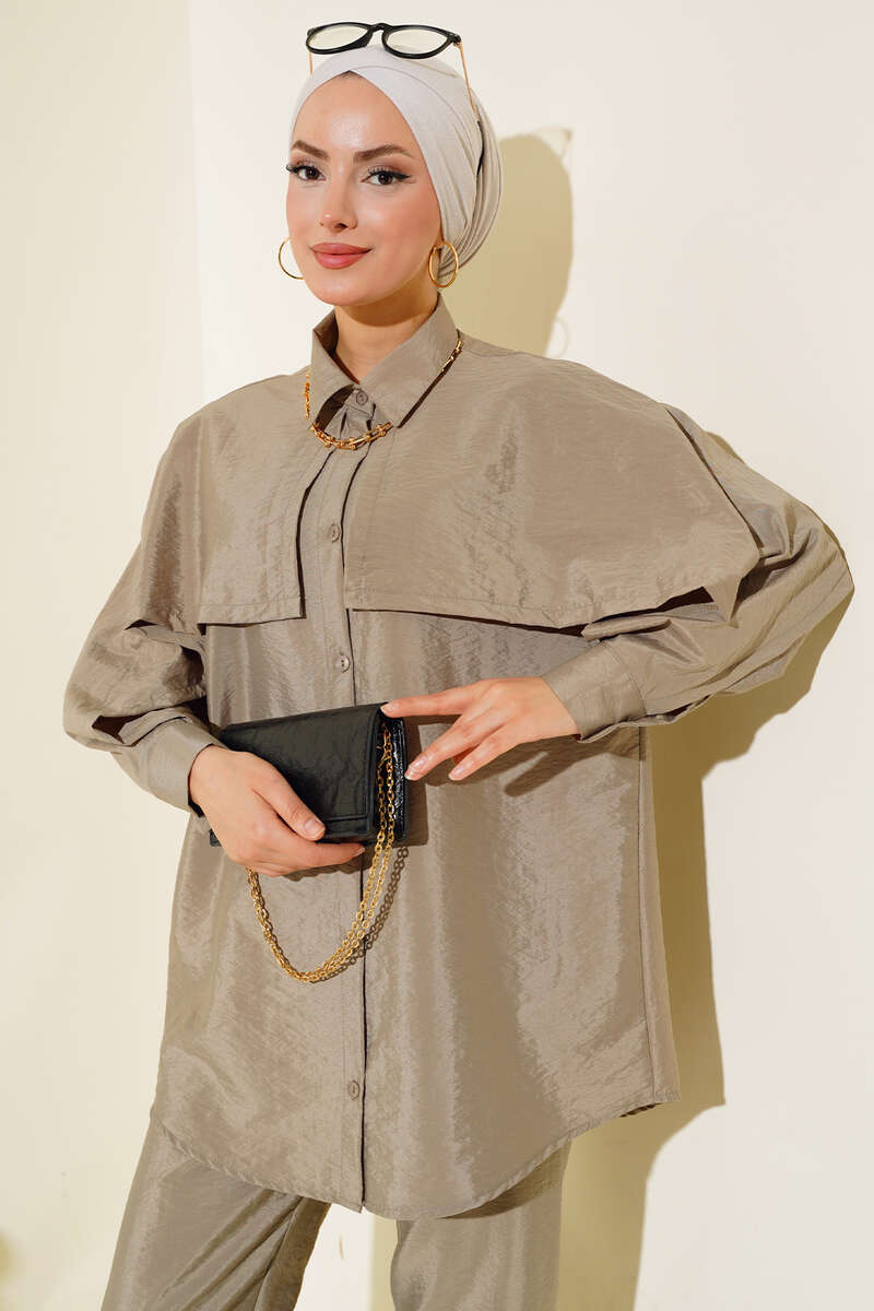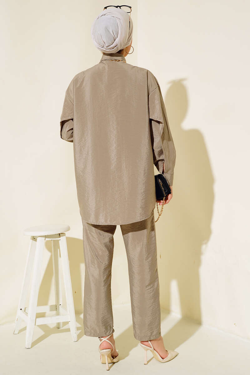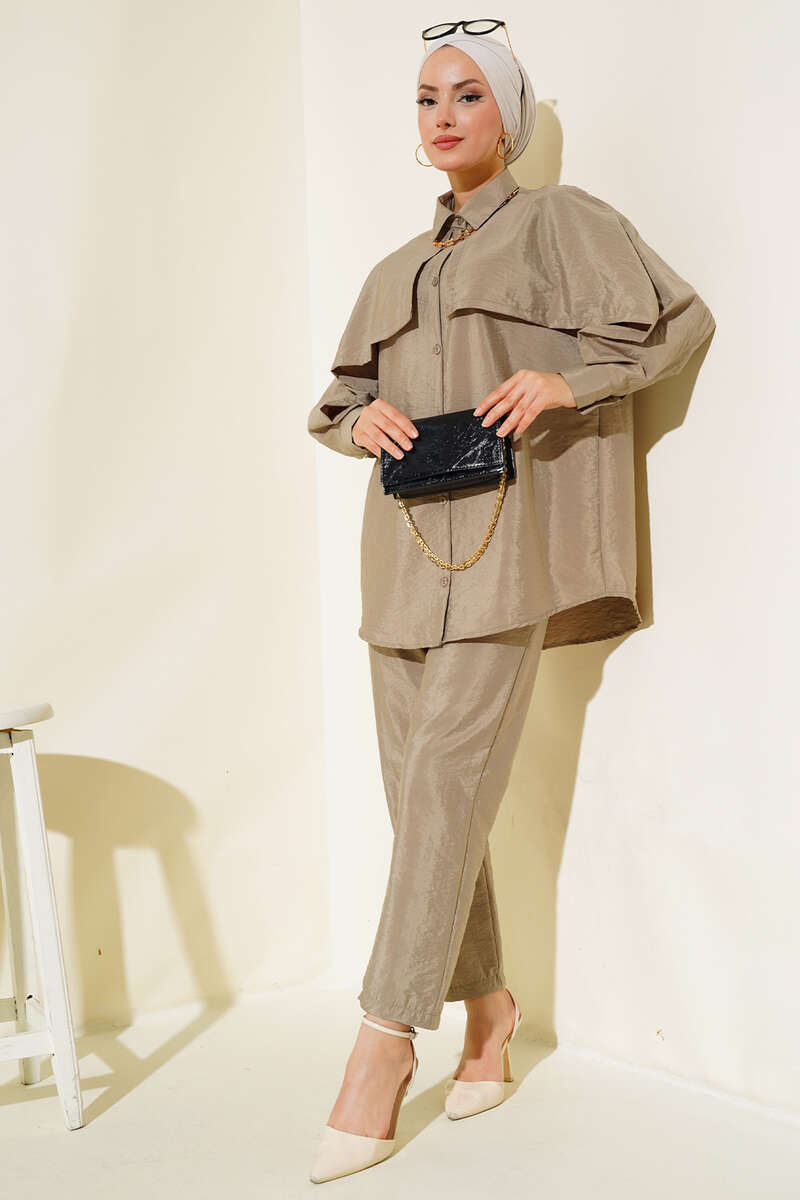 Omuz Ve Kolu Katlı İkili Takım Vizon