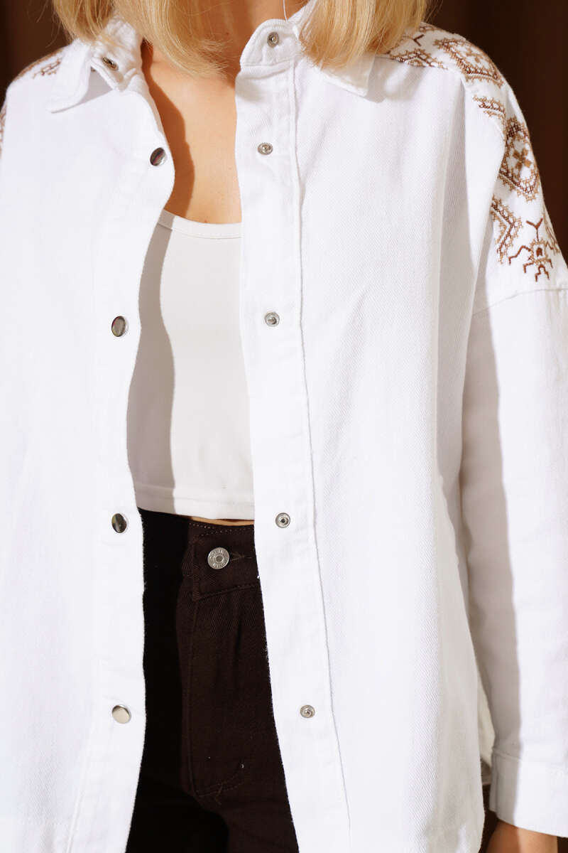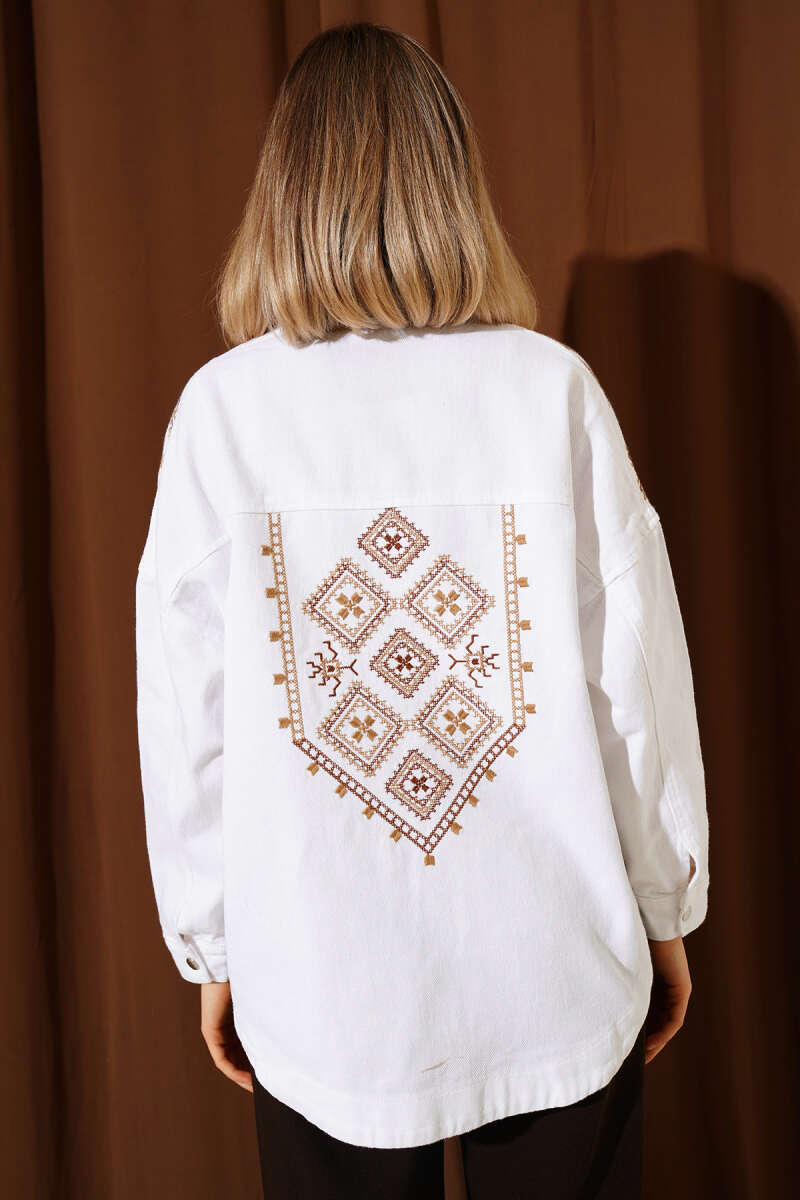 Omuz ve Sırt Nakışlı Kot Ceket Beyaz
