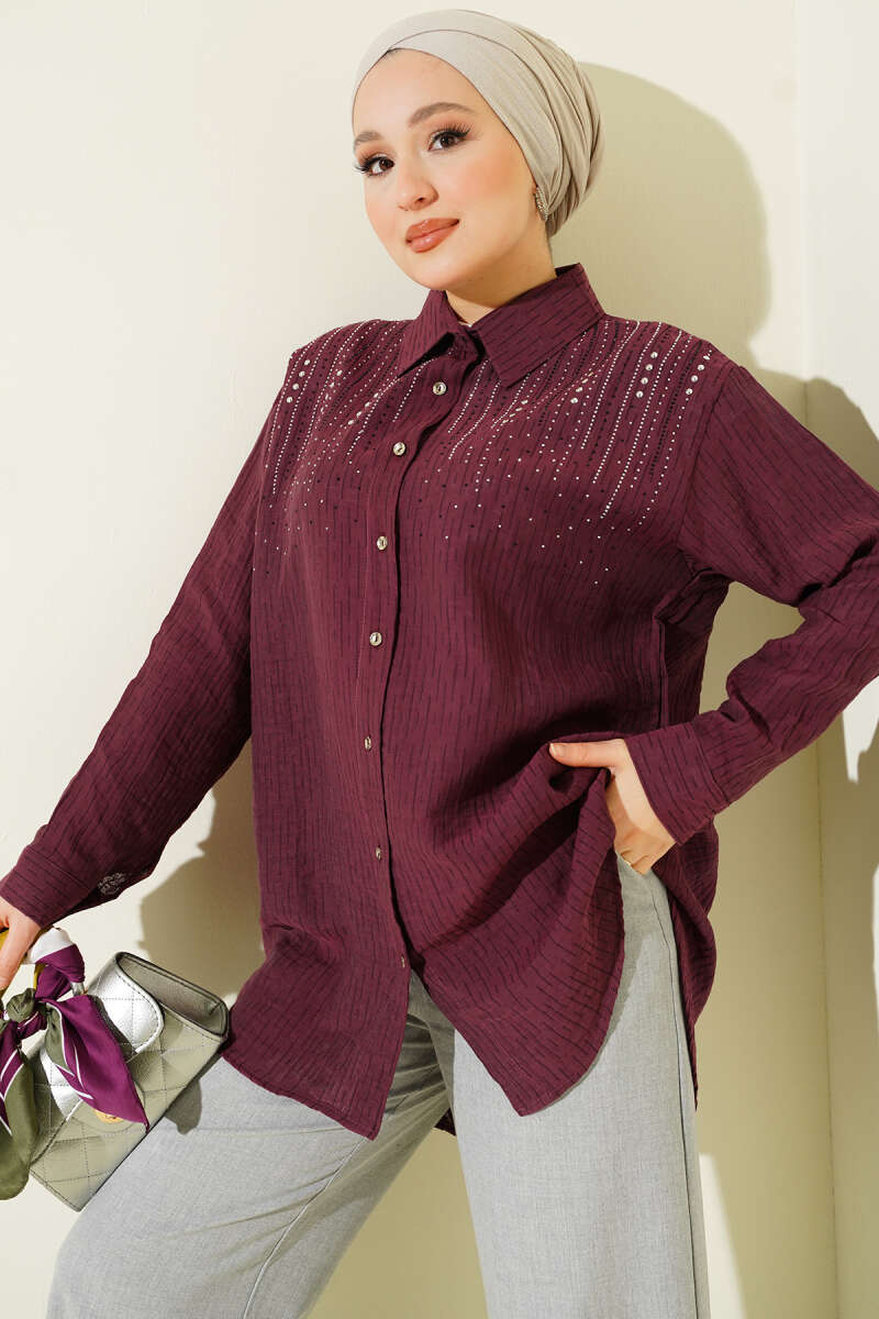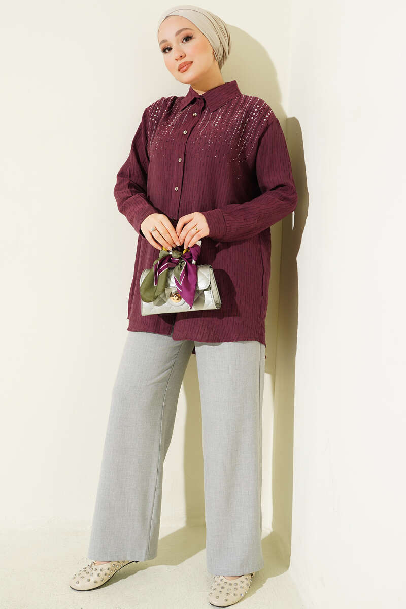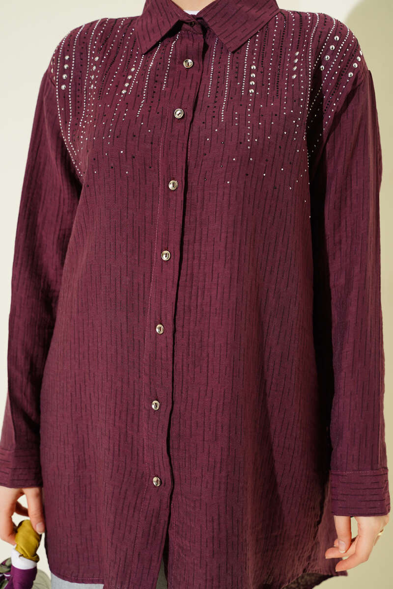 Omuzu Taş Sıralı Gömlek Magenta