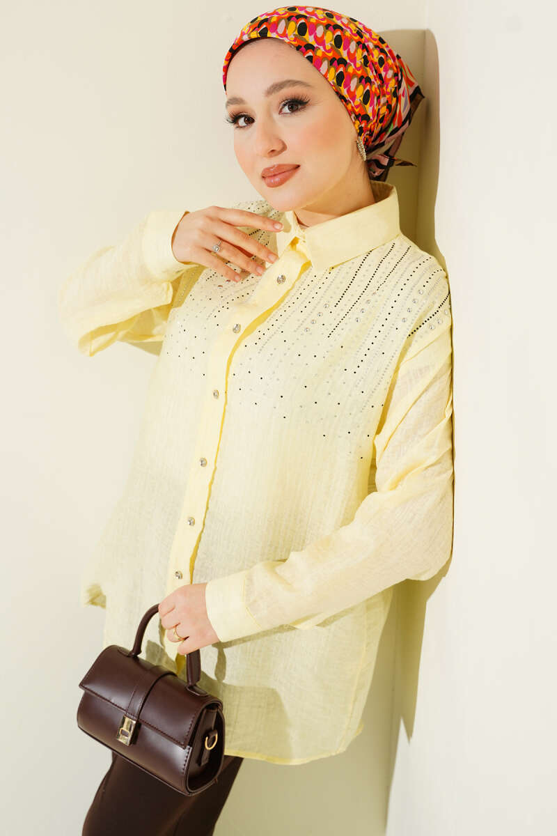 Omuzu Taş Sıralı Gömlek Çağla Yeşili