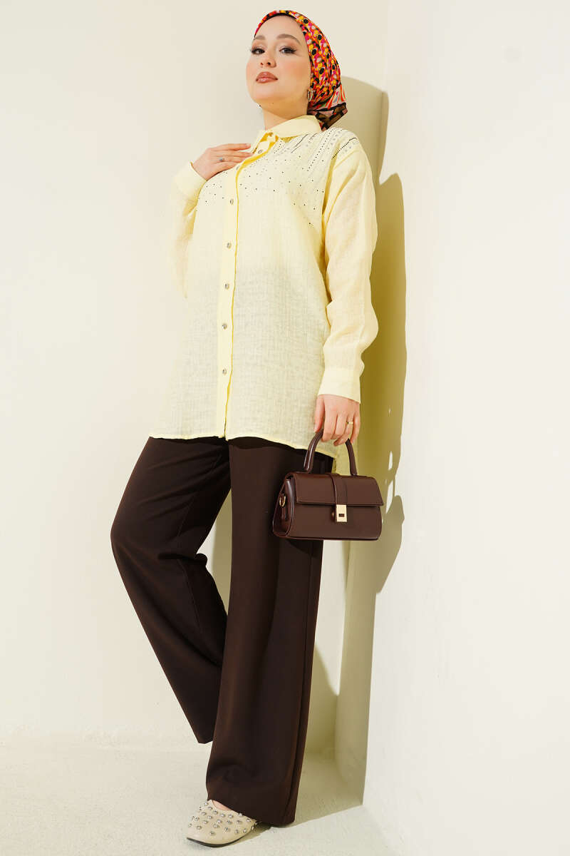 Omuzu Taş Sıralı Gömlek Kahve
