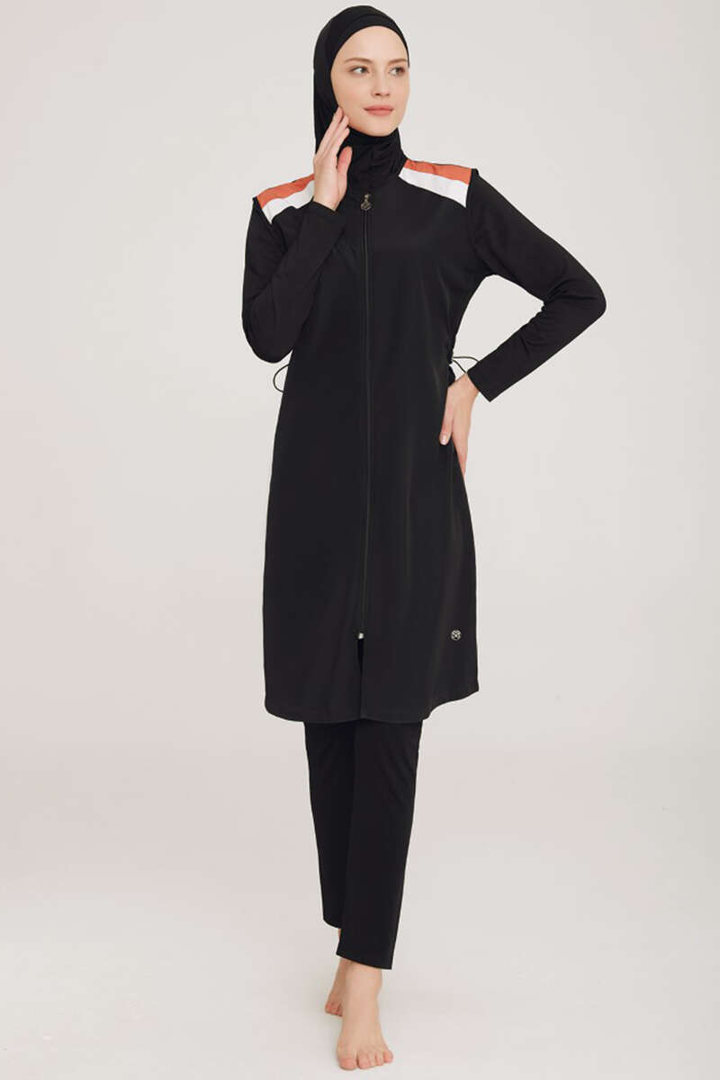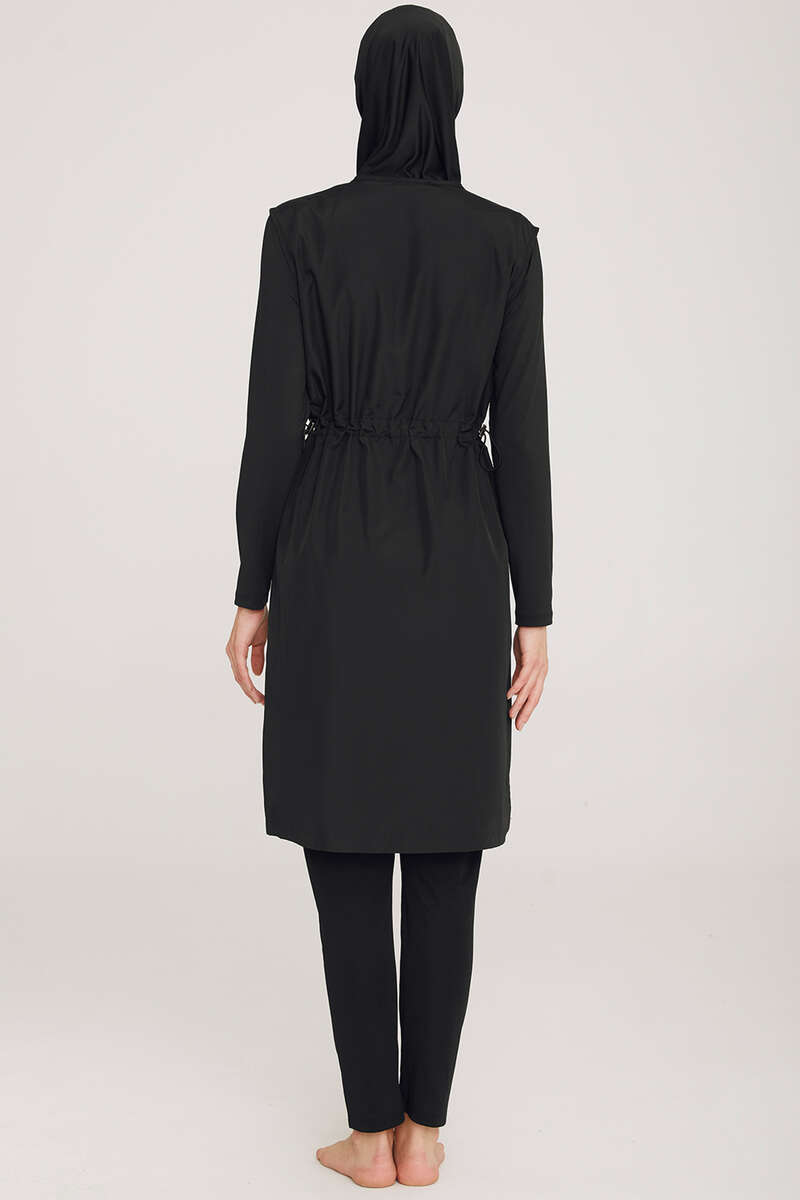 Omzu Şerit Detaylı Tesettür Mayo Siyah