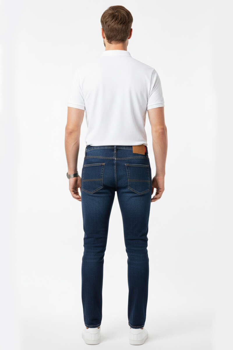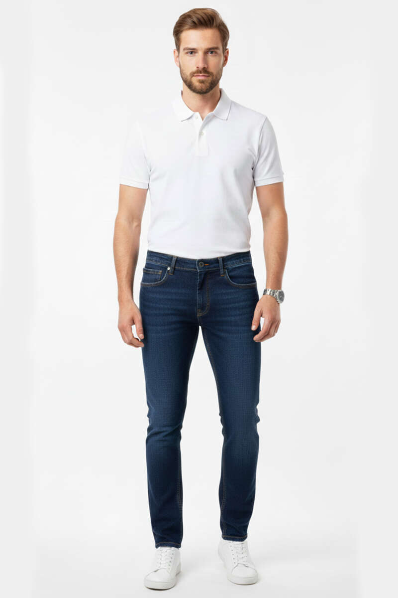 Dar Paça Likralı Erkek Kot Pantolon Lacivert