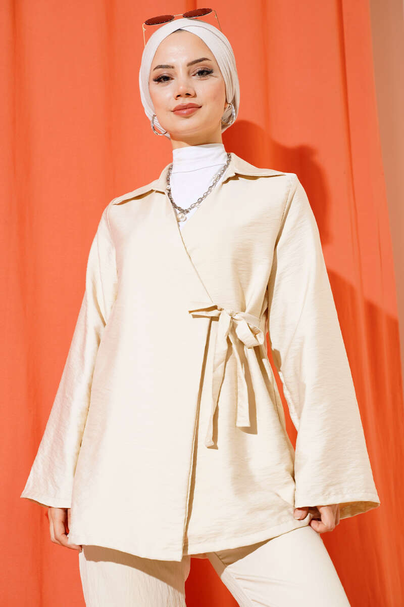 Yandan Bağlamalı Etekli İkili Takım Kahve
