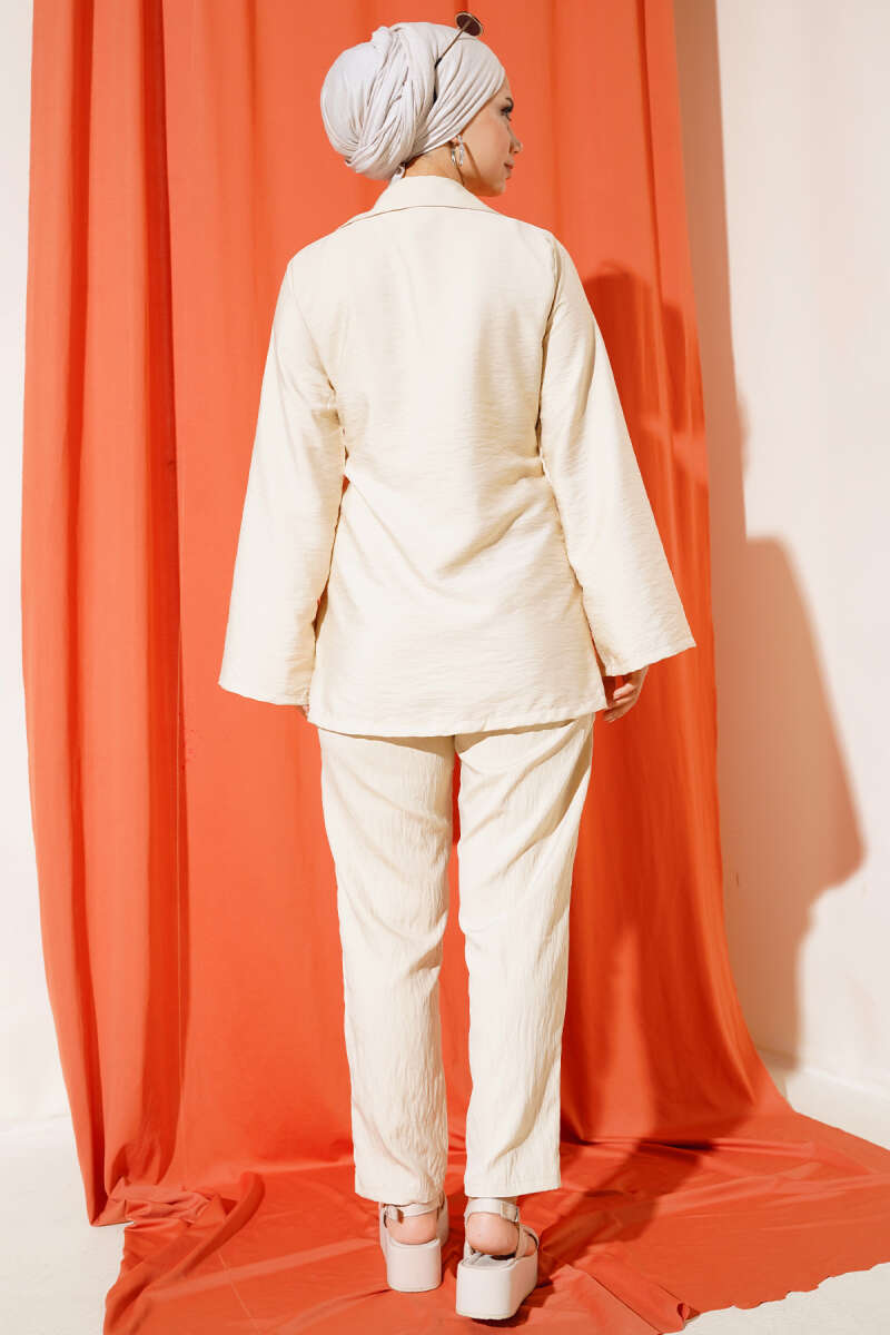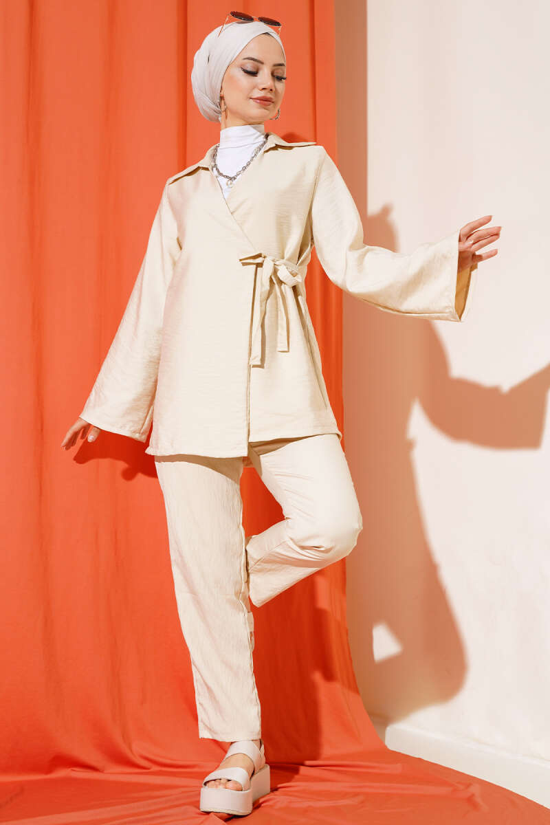 Önü Pileli Kemerli Scuba İkili Takım Haki