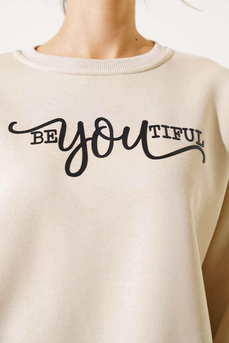 Ön Baskılı Şardonlu Sweatshirt Bej