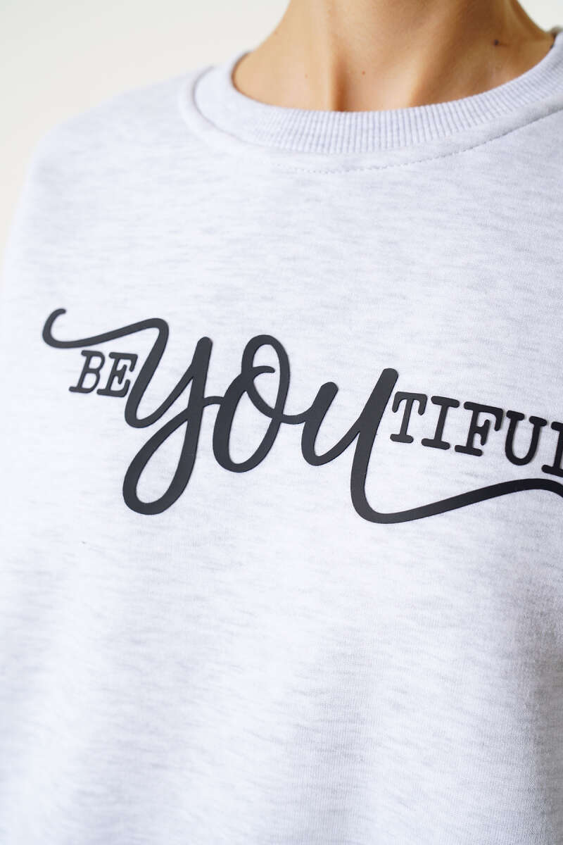 Ön Baskılı Şardonlu Sweatshirt Gri