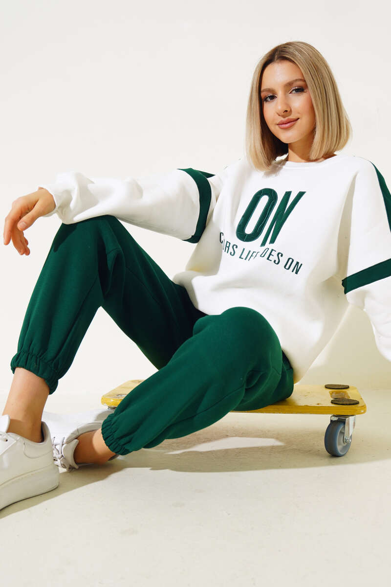 Loyşa İncili Tül Çiçekli İkili Takım Zümrüt