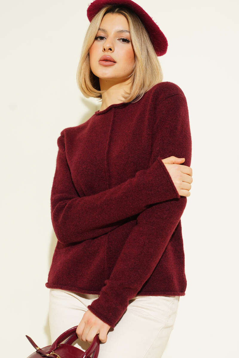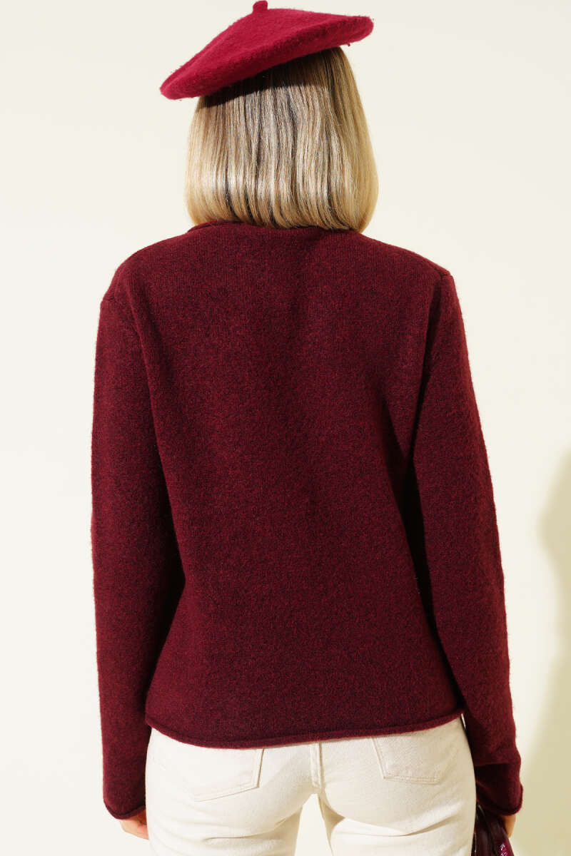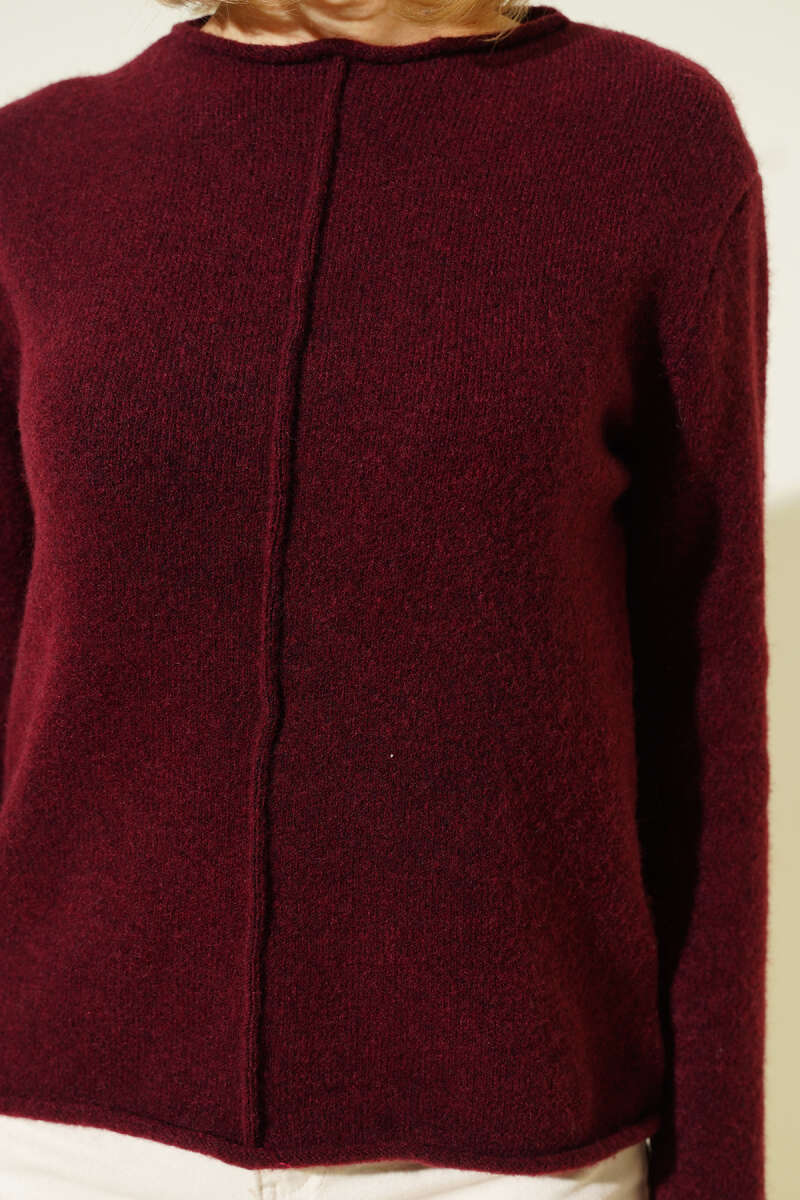 Bisiklet Yaka Uzun Triko Elbise Bordo