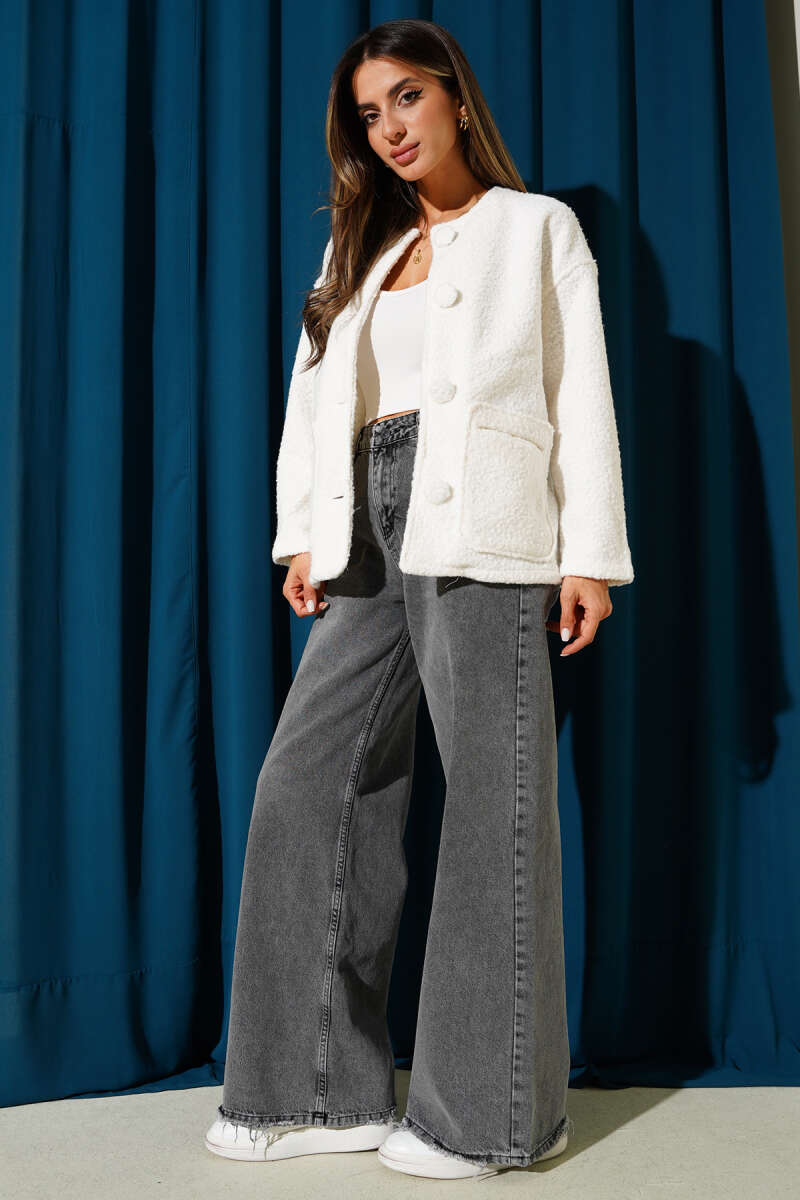 Ön Düğmeli Cep Detaylı Mont Ekru