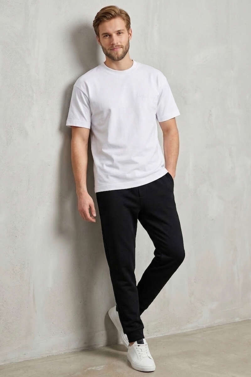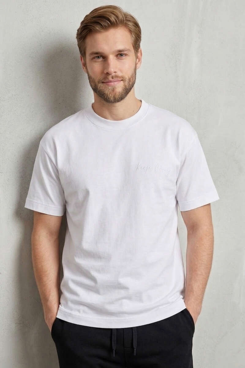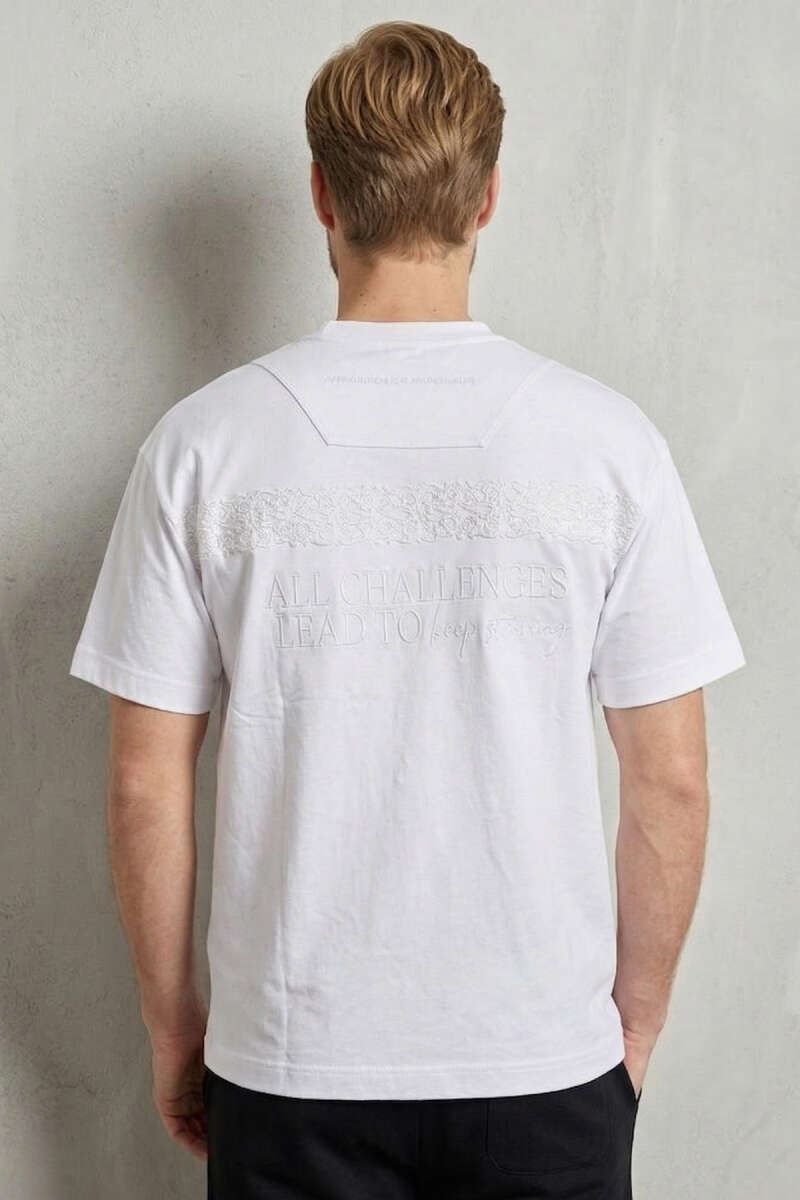 Ön Ve Arka Nakışlı Oversize Erkek T-shirt Beyaz