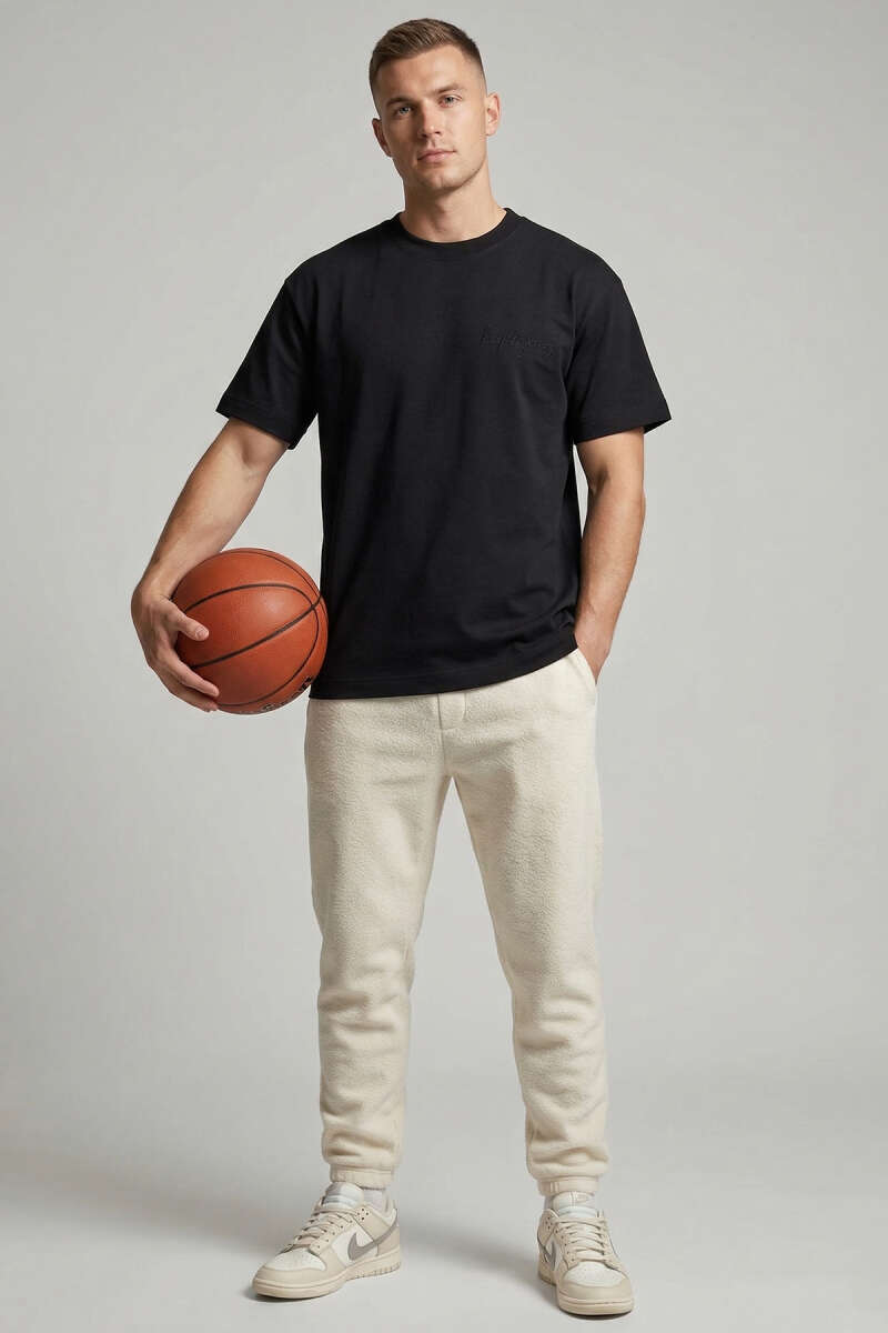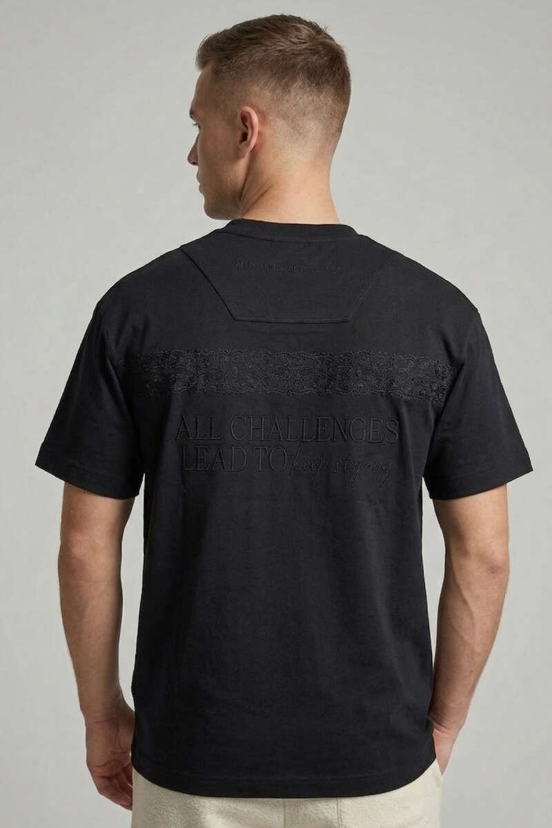 Ön Ve Arka Nakışlı Oversize Erkek T-shirt Siyah