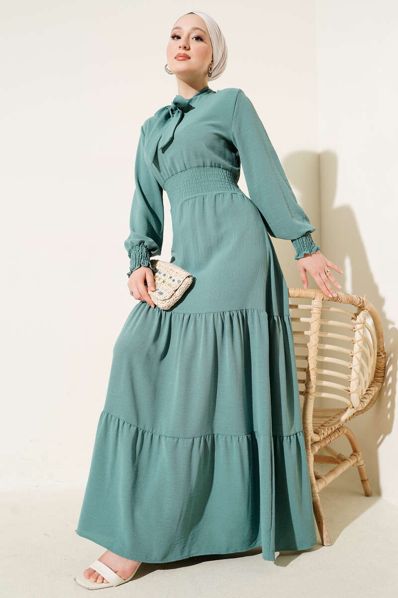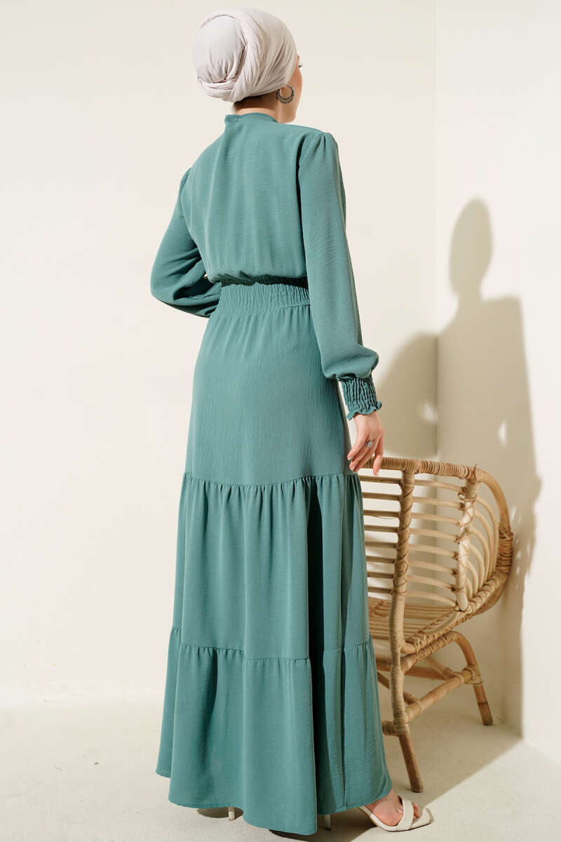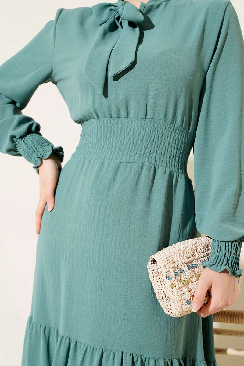 Kat Kat Kuşaklı Terikoton Elbise Haki