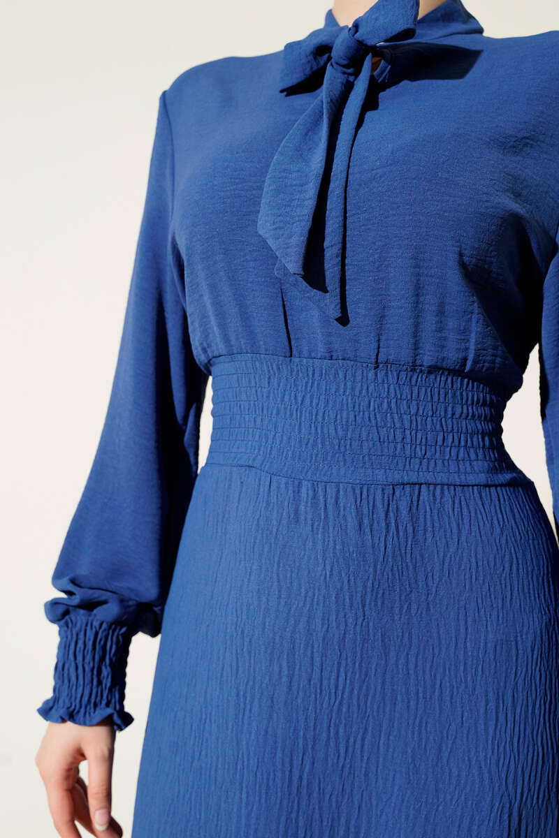 Kuşaklı Dik Fitilli Kaşe Elbise Lacivert