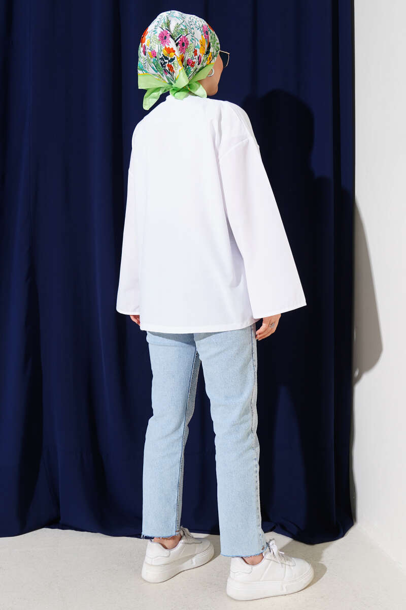 Geniş Bel Lastikli Çımalı Pantolon Beyaz