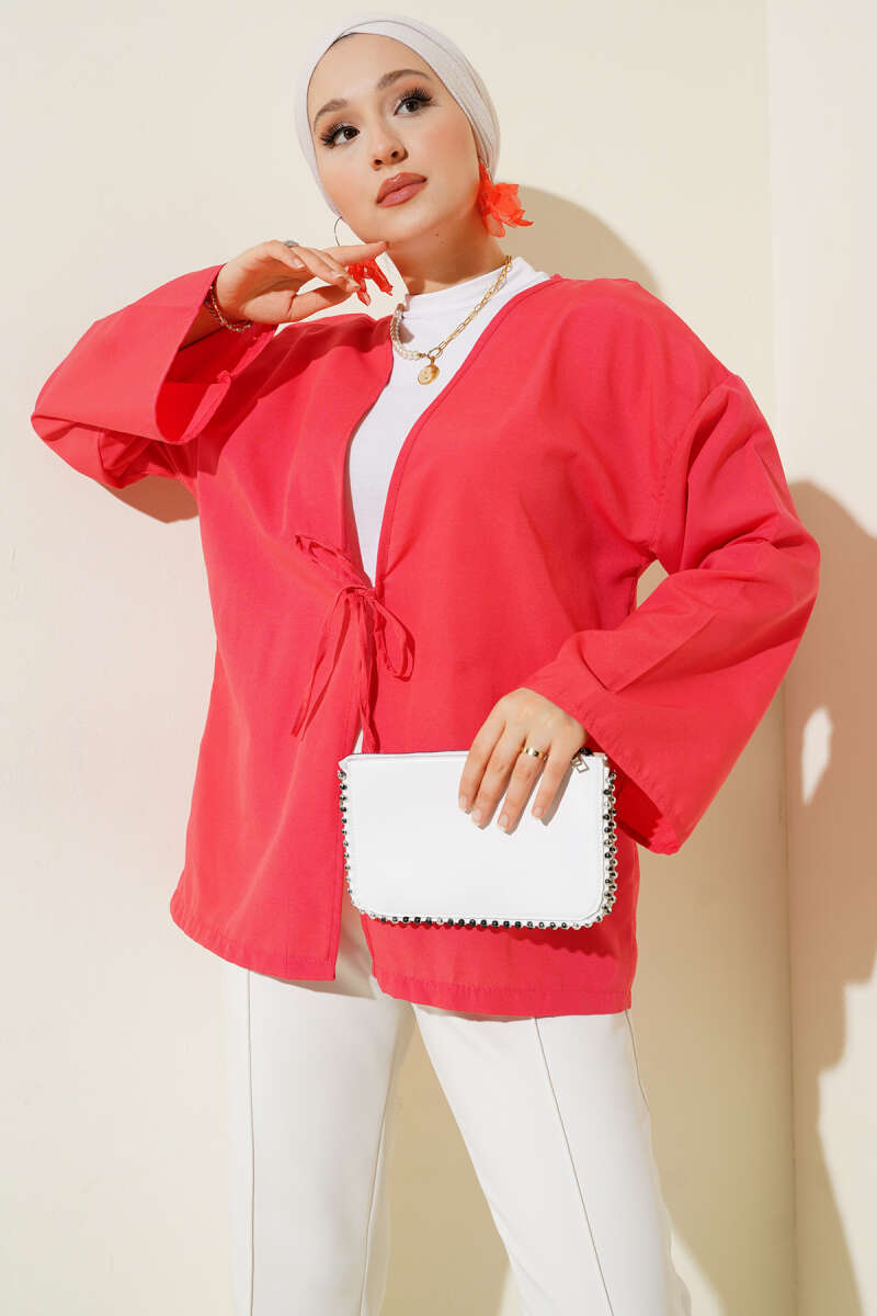 Duble Kol İp Bağcıklı Tunik Kırmızı