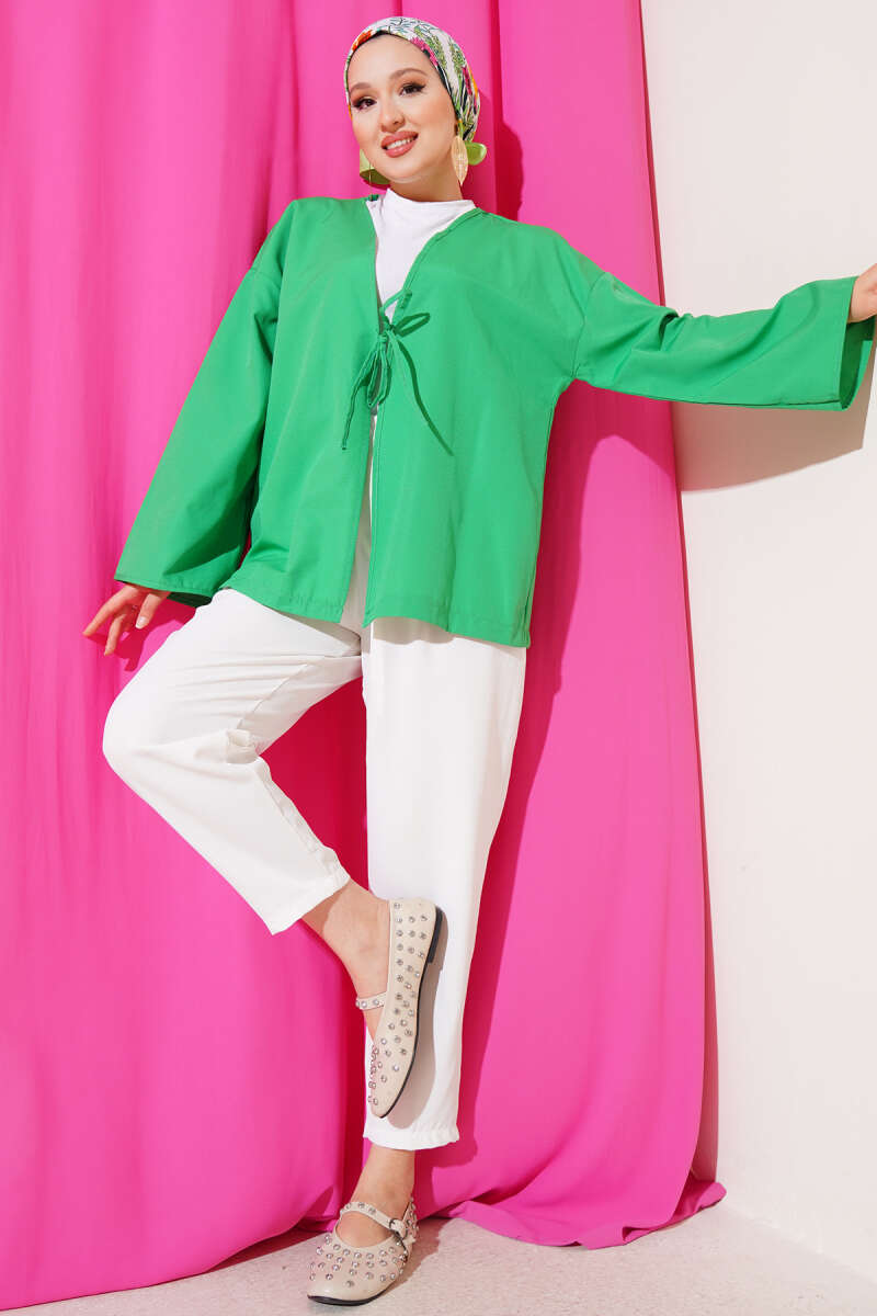 Duble Kol İp Bağcıklı Tunik Zümrüt