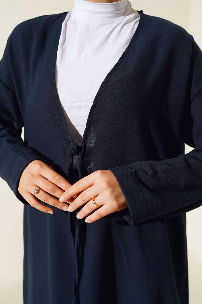 Bel Bağcıklı Bisiklet Yaka Triko Elbise Lacivert