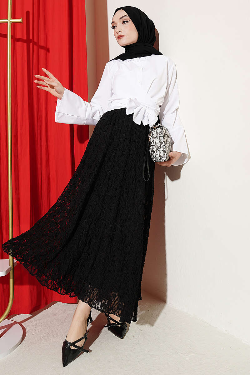 Kat Kat Detaylı Büzgülü Gömlek Siyah