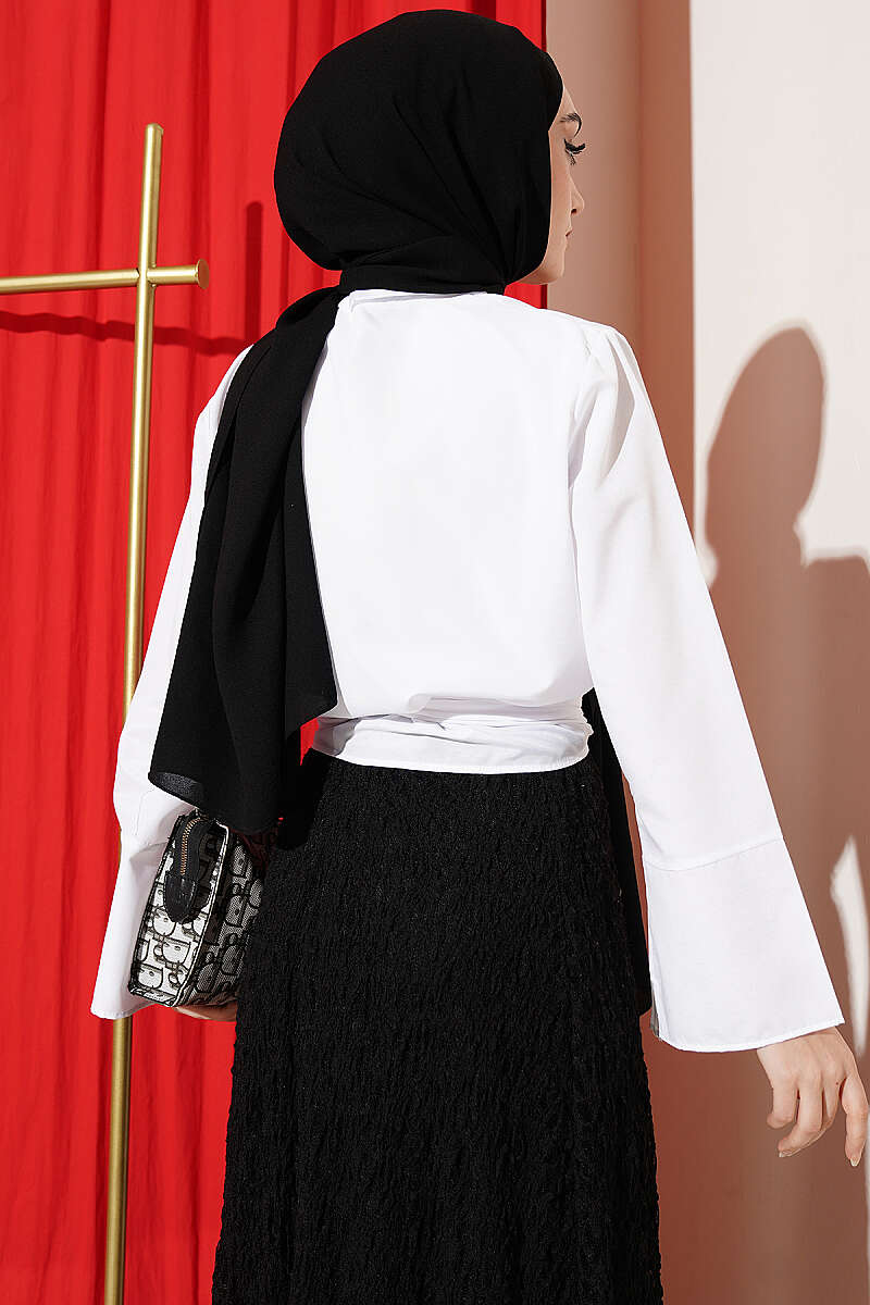Kat Kat Detaylı Büzgülü Gömlek Beyaz
