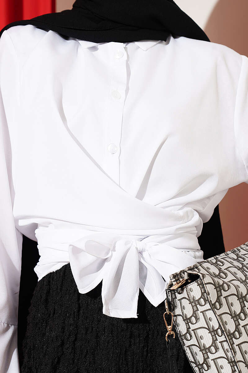 Önden Bağlamalı Kısa Gömlek Beyaz