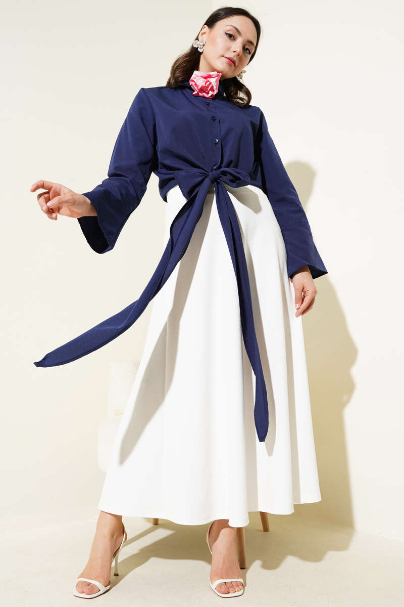 Önden Bağlamalı Kısa Gömlek Lacivert
