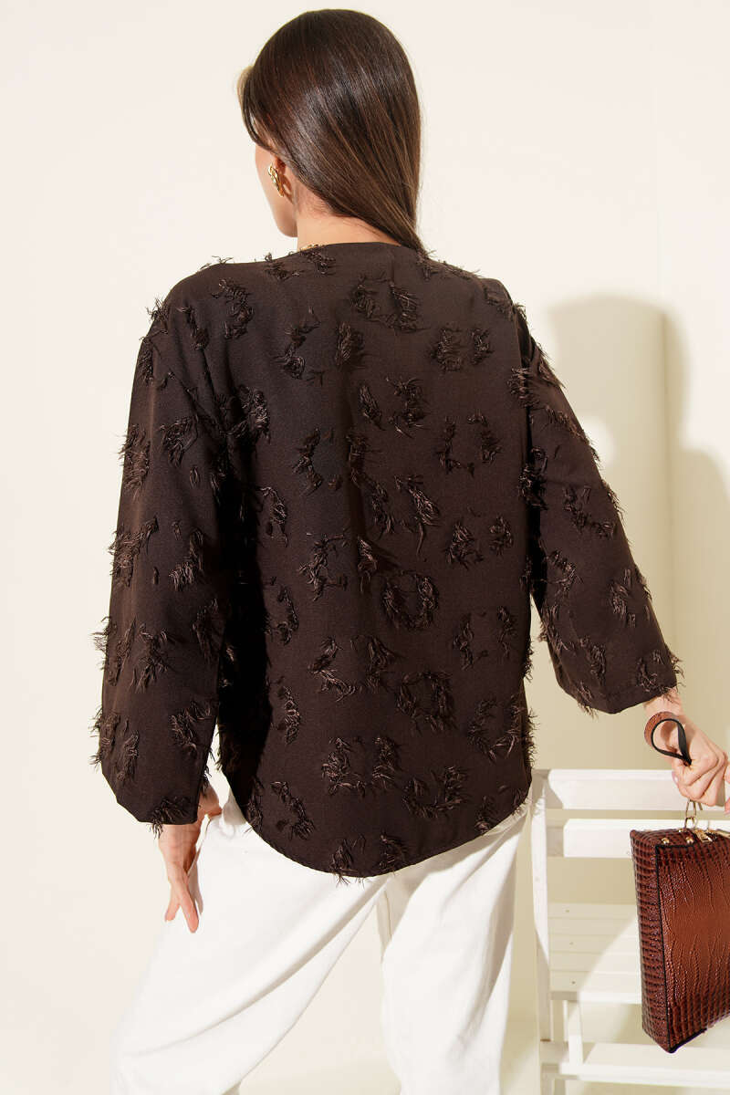 Önden Bağlamalı Püsküllü Kimono Kahve