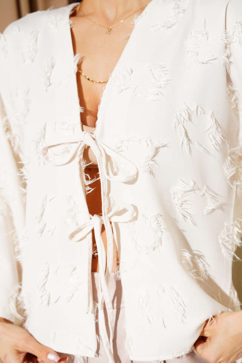 Önden Bağlamalı Püsküllü Kimono Krem
