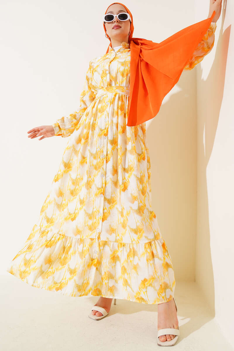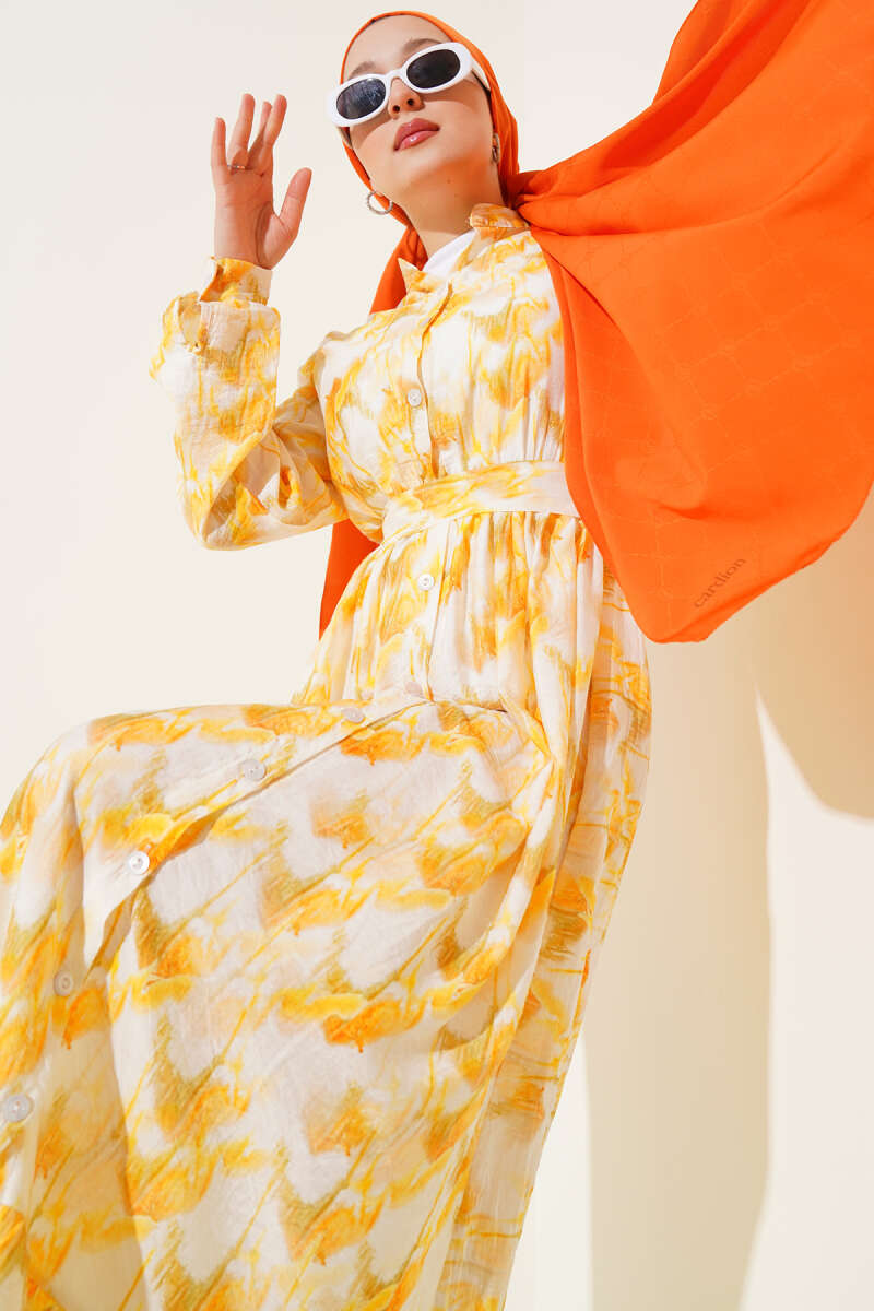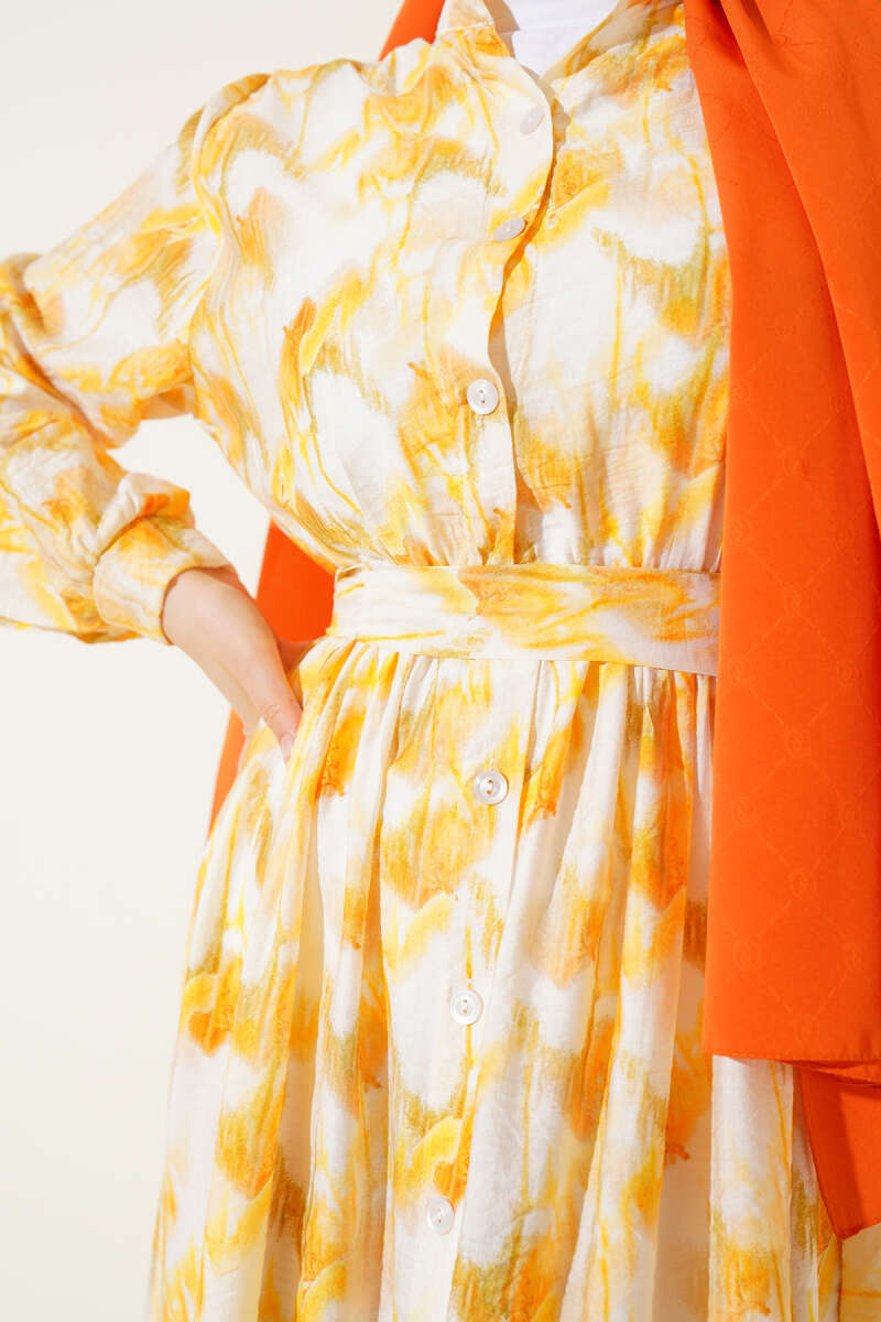 Boydan Düğmeli Kemerli Tensel Elbise Taş