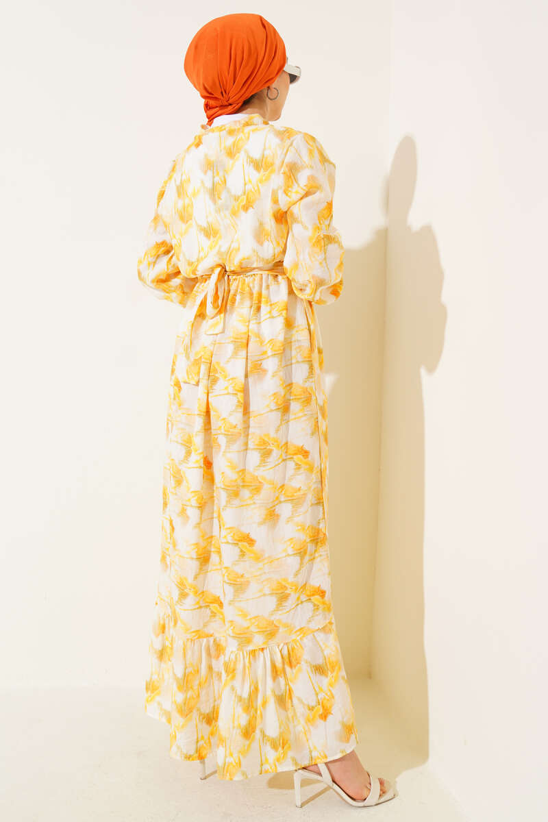 Boydan Düğmeli Kemerli Tensel Elbise Latte
