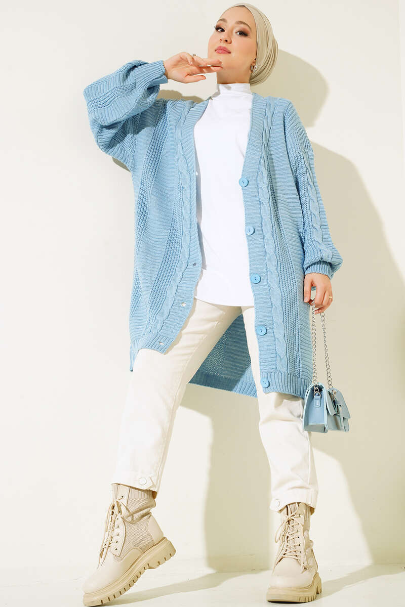 Önden Düğmeli Örgü Hırka Bebe Mavi