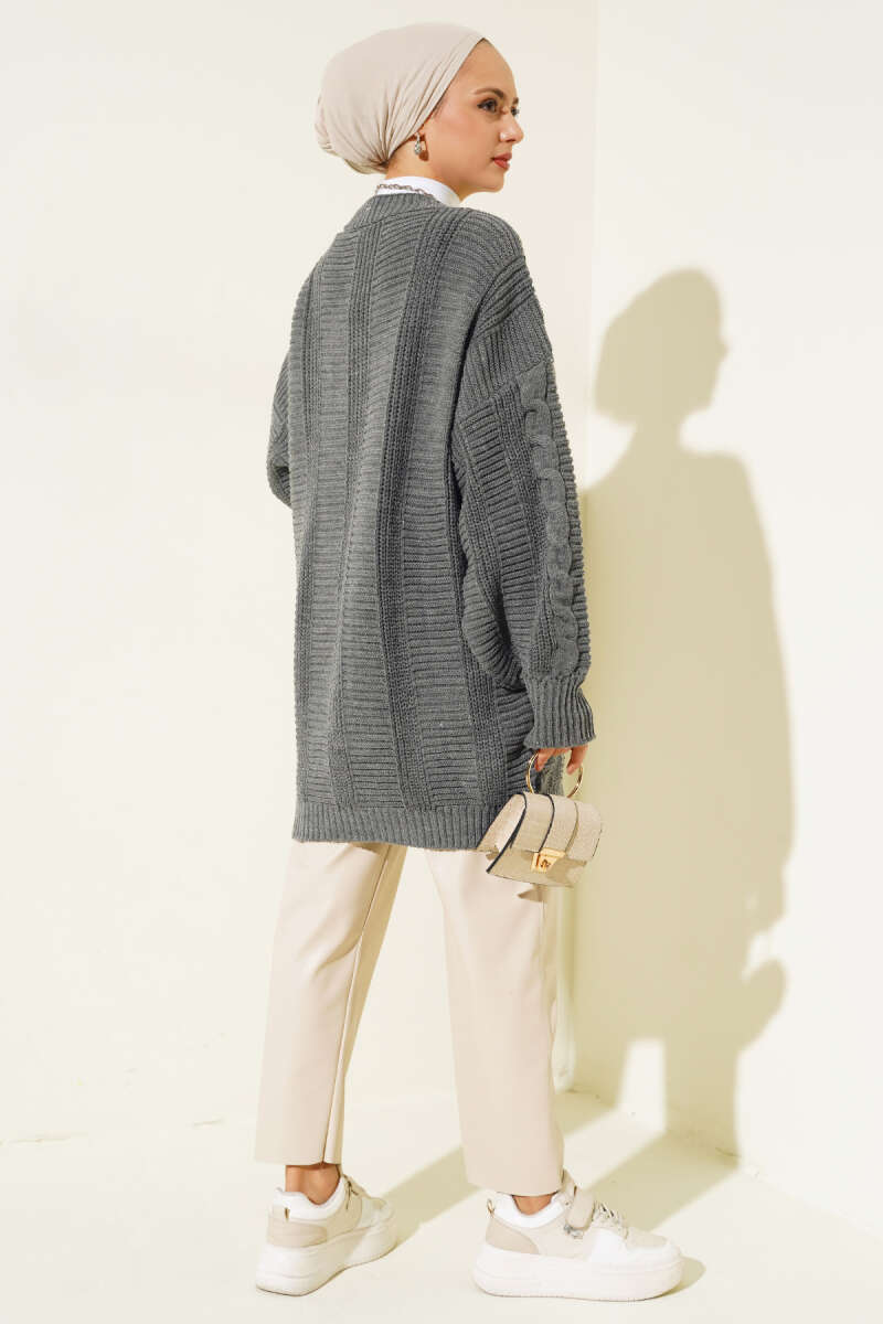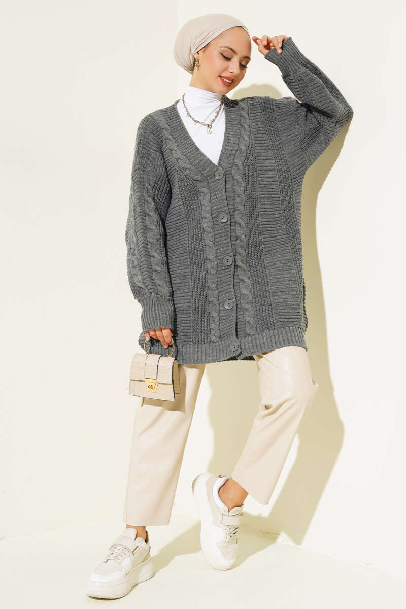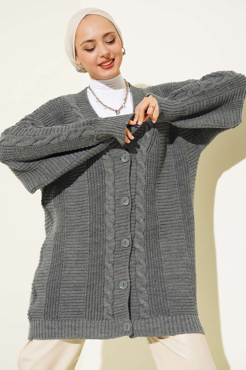 Pirinç Örgü Basic Triko Hırka Nar Çiçeği