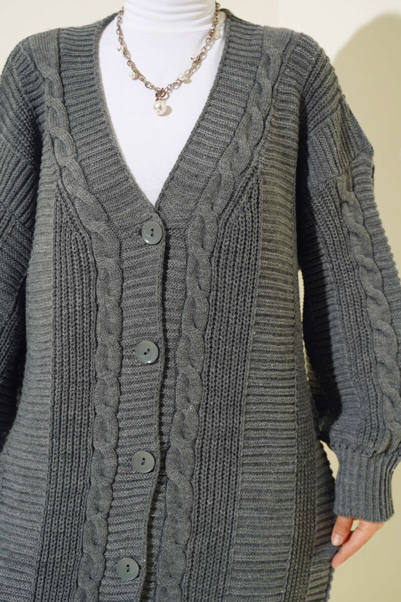 Kruvaze Yaka Uzun Kaşe Kaban Antrasit